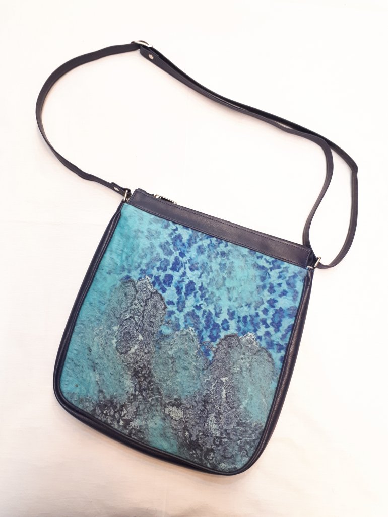 Çantalarımız içi astarlı arka kısım ve yanlar italyan deri ön kısım %100 doğal keçe yününden el yapımıdır. 2 Adet küçük bölmeli omuz askılı ve fermuarlıdır.Ölçüler :30*32 cm dir.