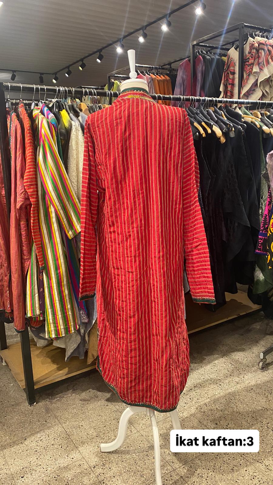 ESKİ KUMAŞLARDAN ÜRETİLMİŞTİR.ÜRÜNÜMÜZ ÖLÇÜLERİ OMUZ=40 BOY=105 KOL =56 EBATINDADIR.ÜRÜNÜMÜZ KİŞİYE ÖZEL TASARIMDIR.