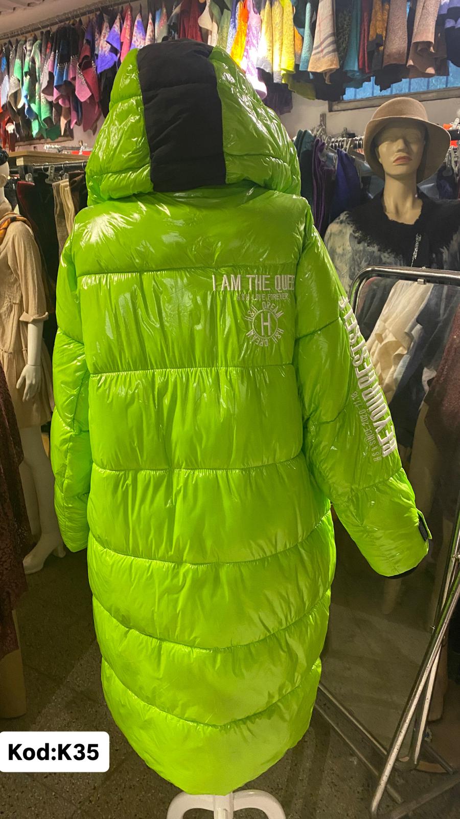 Ürünümüz kapşonlu uzun şişme monttur. Ürünümüz S bedendir. Omuz =40 Göğüs=49Boy=97 ebatındadır. Ürünlerimiz yarım ölçüdür. Ürünümüzde fermuarlı cep detayları bulunmaktadır.Ürün iadesi yoktur.