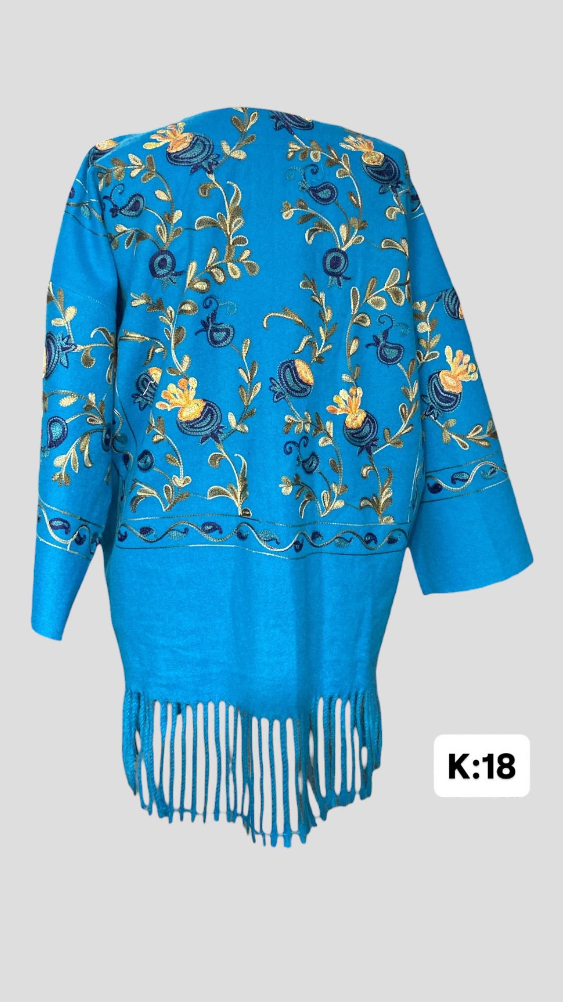 ÜRÜNÜMÜZ KAŞMİR ÜZERİNE SUZANİ İŞLEMELİDİR.ÜRÜNÜMÜZ OMUZ=67 KOL= 35 BOY=56 EBATINDADIR.ÜRÜNÜMÜZÜN ALT KISIMLARI PÜSKÜLLÜDÜR.ÜRÜNÜMÜZÜN KOLLARI SAKAT KOL MODELİDİR.