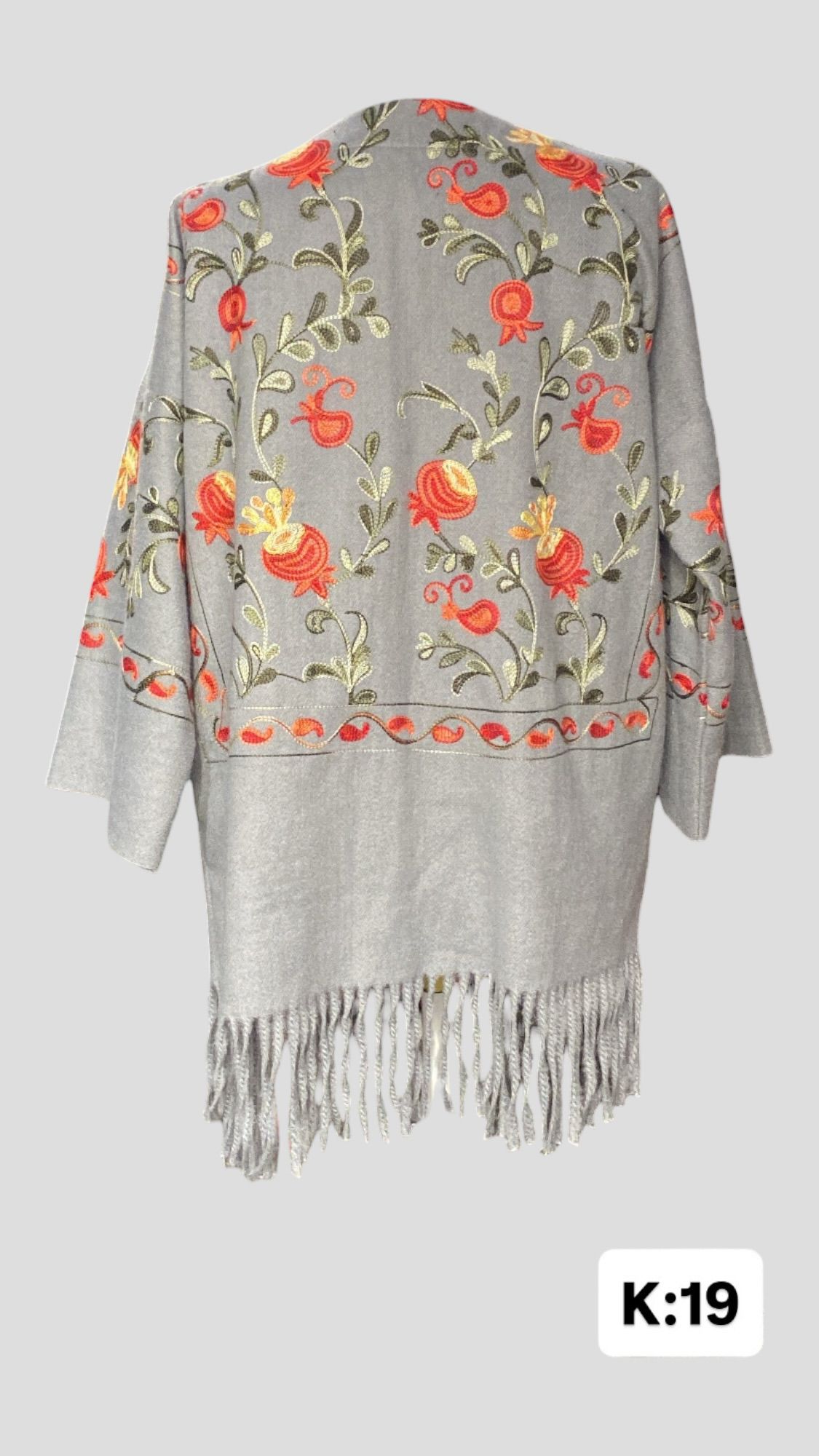 ÜRÜNÜMÜZ KAŞMİR ÜZERİNE SUZANİ İŞLEMELİDİR.ÜRÜNÜMÜZ OMUZ= 70 KOL= 35 BOY= 60 EBATINDADIR.ÜRÜNÜMÜZÜN ALT KISIMLARI PÜSKÜLLÜDÜR.