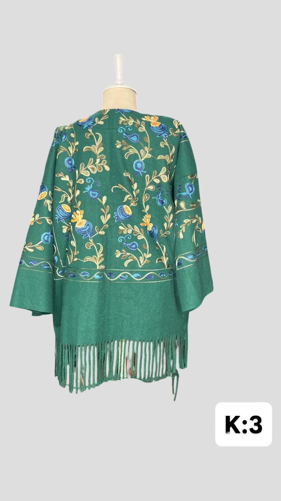 ÜRÜNÜMÜZ KAŞMİR ÜZERİNE SUZANİ İŞLEMELİDİR.ÜRÜNÜMÜZ OMUZ=70 KOL= 35 BOY=60 EBATINDADIR.ÜRÜNÜMÜZÜN ALT KISIMLARI PÜSKÜLLÜDÜR.ÜRÜNÜMÜZÜN KOLLARI SAKAT KOL MODELİDİR.