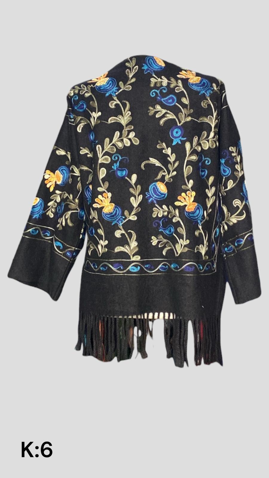 ÜRÜNÜMÜZ KAŞMİR ÜZERİNE SUZANİ İŞLEMELİDİR.ÜRÜNÜMÜZ OMUZ= 70 KOL= 35 BOY= 60 EBATINDADIR.ÜRÜNÜMÜZÜN ALT KISIMLARI PÜSKÜLLÜDÜR.
