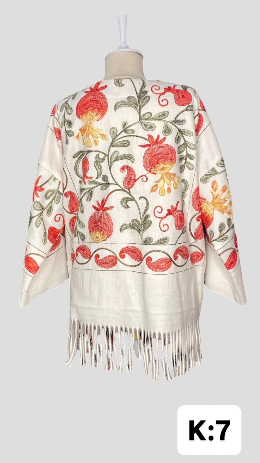 ÜRÜNÜMÜZ KAŞMİR ÜZERİNE SUZANİ İŞLEMELİDİR.ÜRÜNÜMÜZ OMUZ= 70 KOL= 35 BOY= 60 EBATINDADIR.ÜRÜNÜMÜZÜN ALT KISIMLARI PÜSKÜLLÜDÜR.