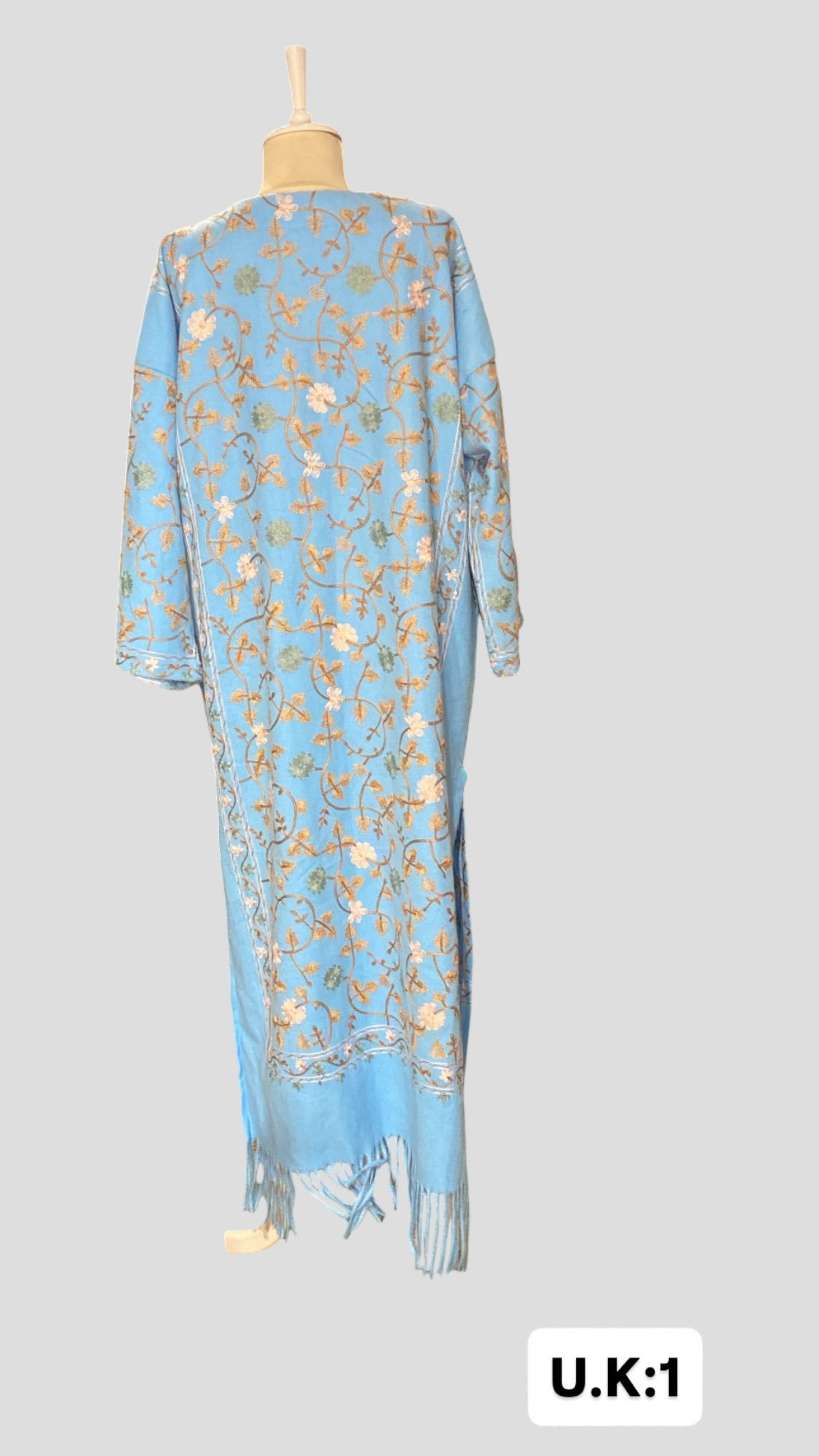 ÜRÜNÜMÜZ KAŞMİR ÜZERİNE SUZANİ İŞLEMELİDİR.ÜRÜNÜMÜZ OMUZ=64 KOL=40 BOY=125 EBATINDADIR.ÜRÜNÜMÜZÜN ALT KISIMLARI PÜSKÜLLÜDÜR.ÜRÜNÜMÜZ YIRTMAÇLIDIR.ÜRÜNÜMÜZ KUŞAKLIDIR.ÜRÜNÜMÜZÜN KOLLARI SAKAT KOL MODELİDİR.