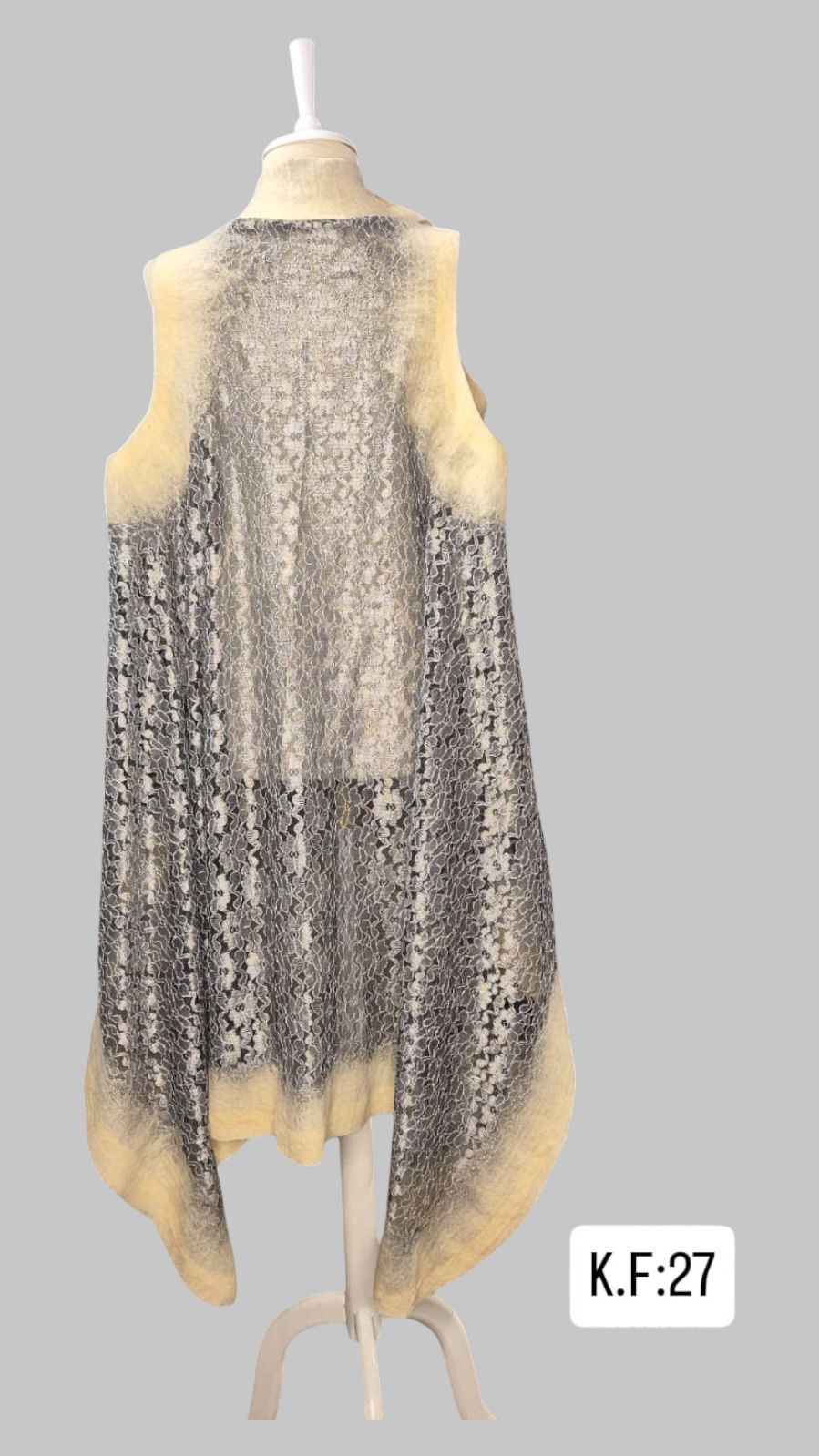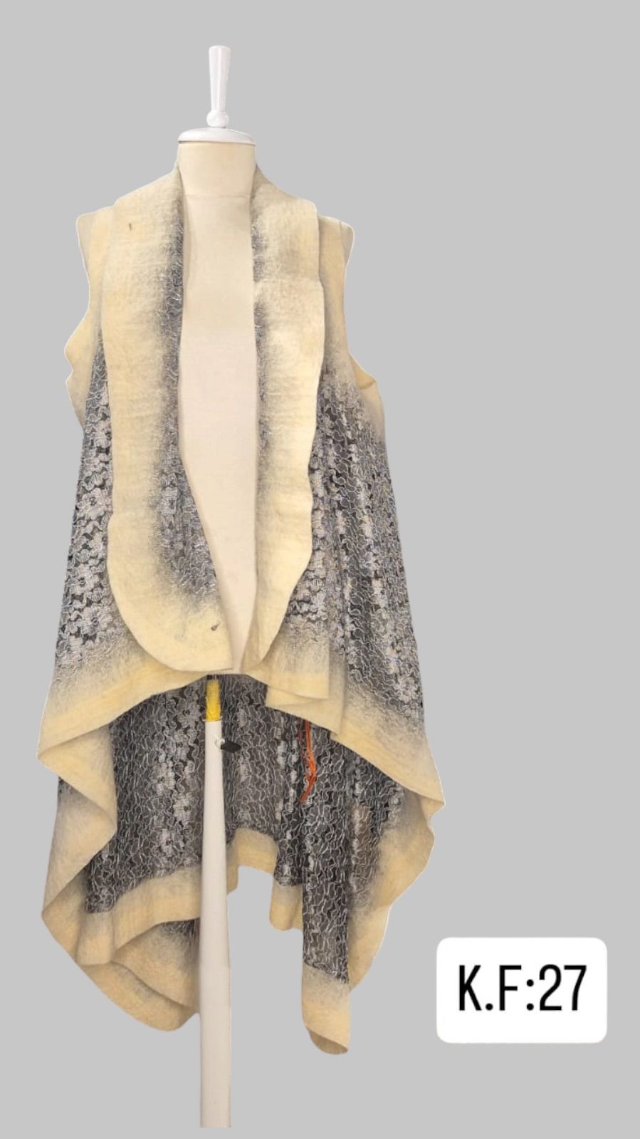 ÜRÜNÜMÜZÜN ORTASI İPEK ŞİFONDUR.ÜRÜNÜMÜZ KENARLARI KEÇEDİR.ÜRÜNÜMÜZ BOY= 122 GENİŞLİK= 140 SIRT ARASI=37 EBATINDADIR.ILIK SU VE ŞAMPUAN İLE ELDE YIKAMA YAPINIZ.ÜRÜNLERİMİZ SINIRLI STOKLARDA ÜRETİLMİŞTİR.