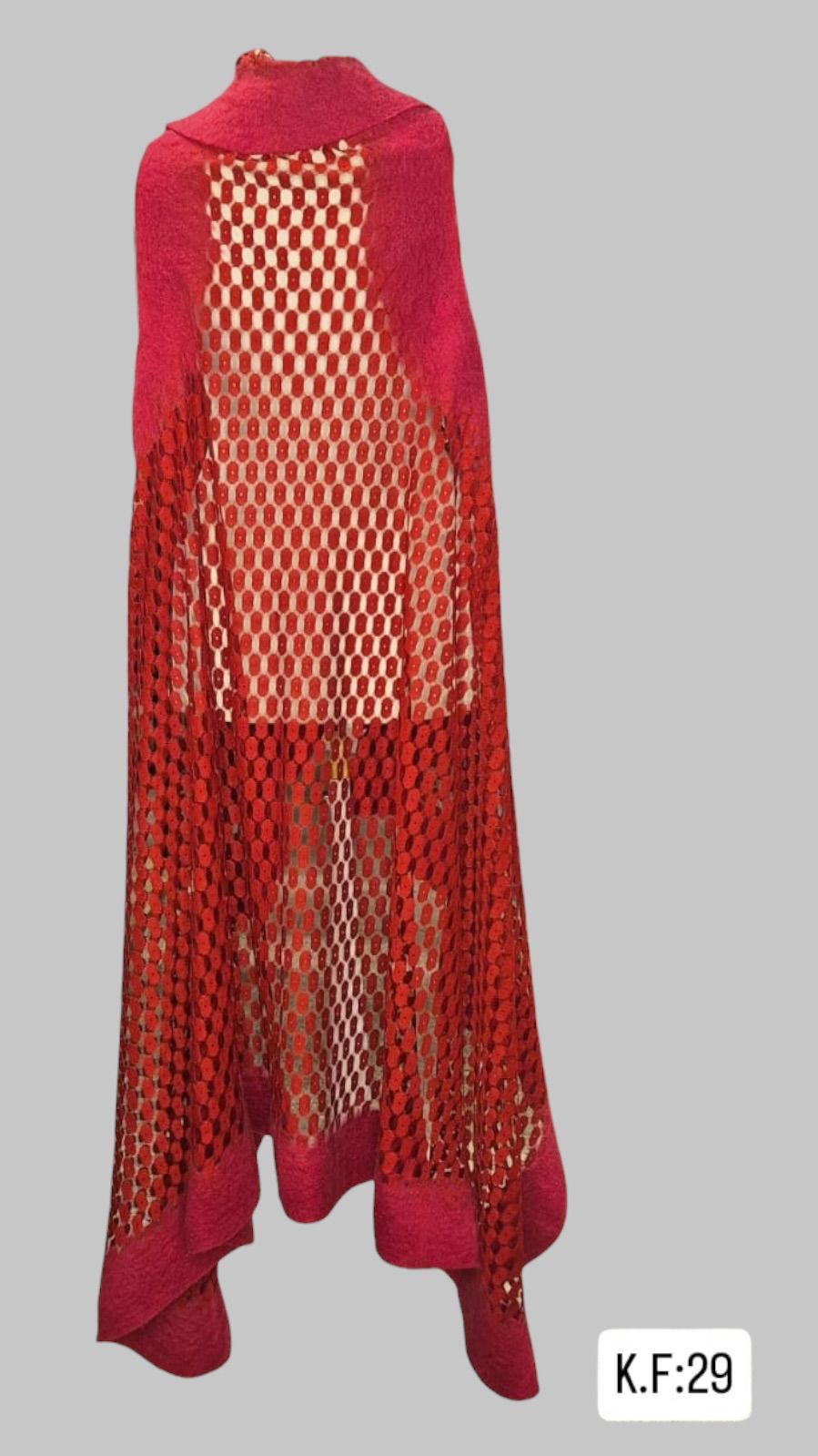 ÜRÜNÜMÜZÜN ORTASI İPEK ŞİFONDUR.ÜRÜNÜMÜZ KENARLARI KEÇEDİR.ÜRÜNÜMÜZ BOY= 113 GENİŞLİK= 150 SIRT ARASI=25 EBATINDADIR.ILIK SU VE ŞAMPUAN İLE ELDE YIKAMA YAPINIZ.ÜRÜNLERİMİZ SINIRLI STOKLARDA ÜRETİLMİŞTİR.