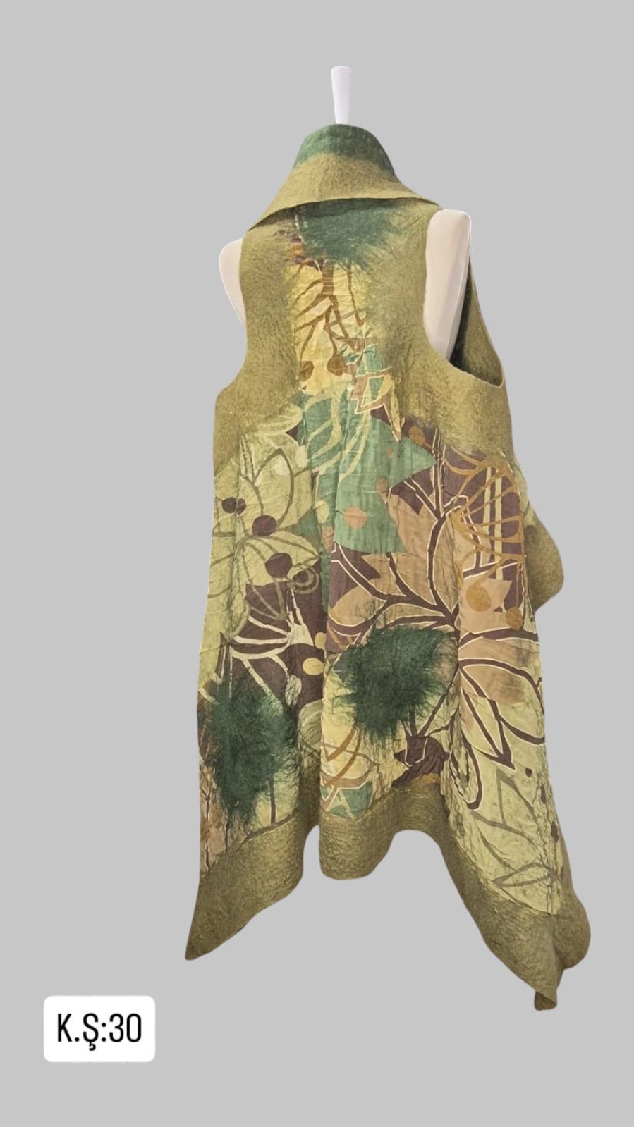 ÜRÜNÜMÜZÜN ORTASI İPEK ŞİFONDUR.ÜRÜNÜMÜZ KENARLARI KEÇEDİR.ÜRÜNÜMÜZ BOY= 122 GENİŞLİK= 140 SIRT ARASI=37 EBATINDADIR.ILIK SU VE ŞAMPUAN İLE ELDE YIKAMA YAPINIZ.ÜRÜNLERİMİZ SINIRLI STOKLARDA ÜRETİLMİŞTİR.