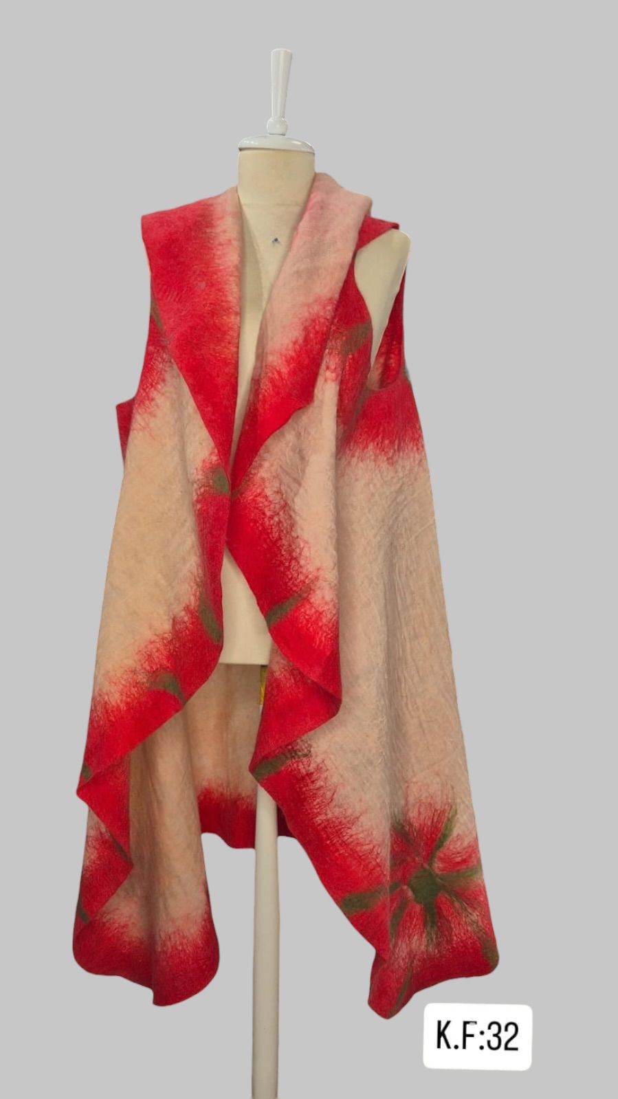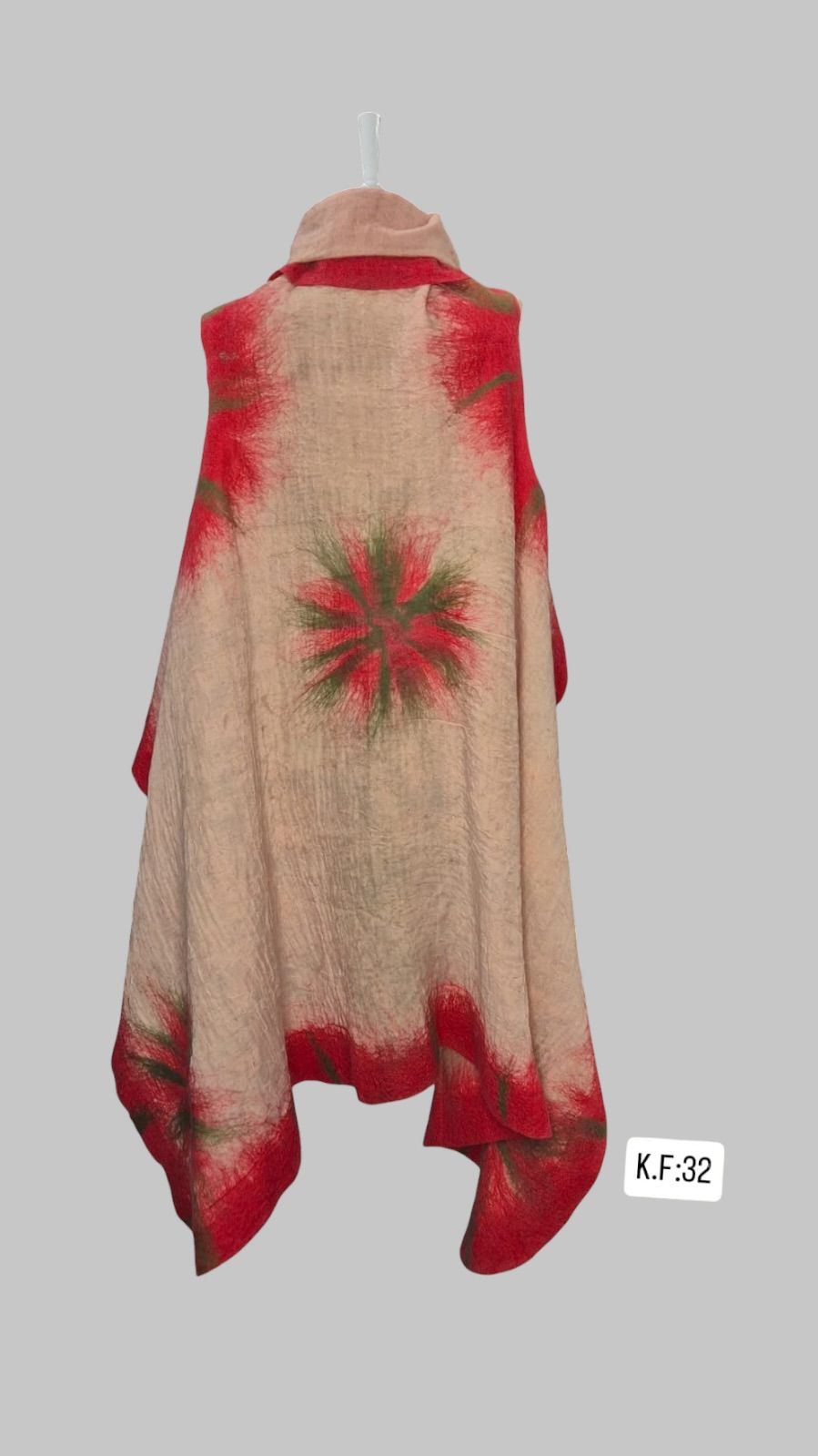 ÜRÜNÜMÜZÜN ORTASI İPEK ŞİFONDUR.ÜRÜNÜMÜZ KENARLARI KEÇEDİR.ÜRÜNÜMÜZ BOY= 122 GENİŞLİK= 140 SIRT ARASI=37 EBATINDADIR.ILIK SU VE ŞAMPUAN İLE ELDE YIKAMA YAPINIZ.ÜRÜNLERİMİZ SINIRLI STOKLARDA ÜRETİLMİŞTİR.
