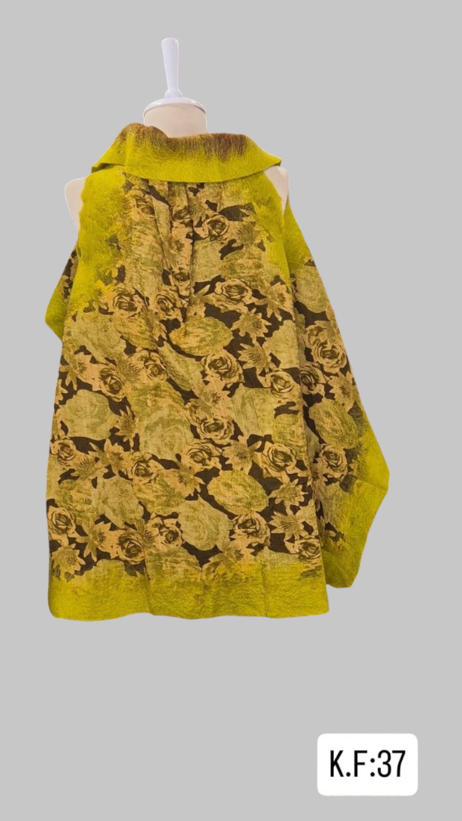ÜRÜNÜMÜZÜN ORTASI İPEK ŞİFONDUR.ÜRÜNÜMÜZ KENARLARI KEÇEDİR.ÜRÜNÜMÜZ BOY= 122 GENİŞLİK= 140 SIRT ARASI=37 EBATINDADIR.ILIK SU VE ŞAMPUAN İLE ELDE YIKAMA YAPINIZ.ÜRÜNLERİMİZ SINIRLI STOKLARDA ÜRETİLMİŞTİR.