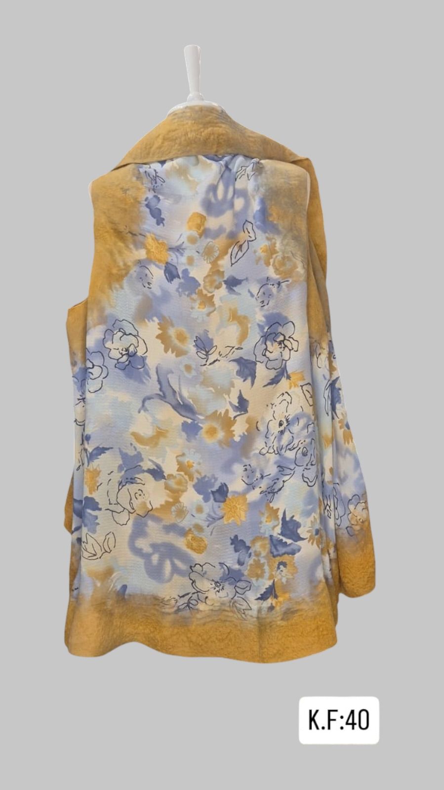 ÜRÜNÜMÜZÜN ORTASI İPEK ŞİFONDUR.ÜRÜNÜMÜZ KENARLARI KEÇEDİR.ÜRÜNÜMÜZ BOY= 122 GENİŞLİK= 140 SIRT ARASI=37 EBATINDADIR.ILIK SU VE ŞAMPUAN İLE ELDE YIKAMA YAPINIZ.ÜRÜNLERİMİZ SINIRLI STOKLARDA ÜRETİLMİŞTİR.