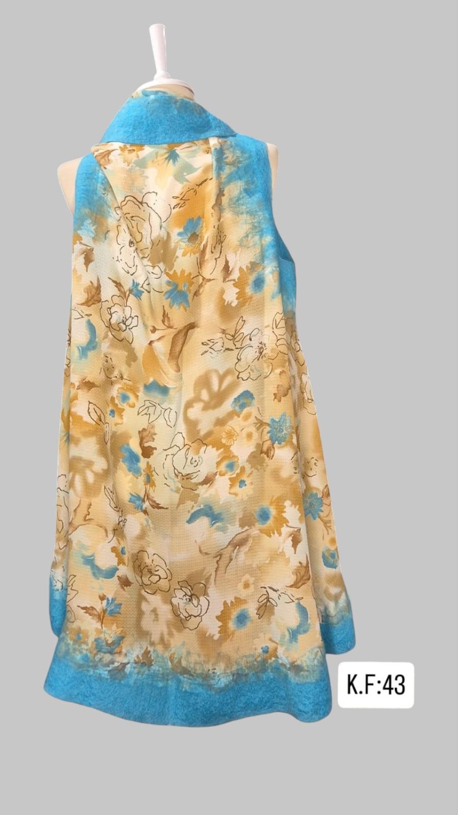 ÜRÜNÜMÜZÜN ORTASI İPEK ŞİFONDUR.ÜRÜNÜMÜZ KENARLARI KEÇEDİR.ÜRÜNÜMÜZ BOY= 122 GENİŞLİK= 140 SIRT ARASI=37 EBATINDADIR.ILIK SU VE ŞAMPUAN İLE ELDE YIKAMA YAPINIZ.ÜRÜNLERİMİZ SINIRLI STOKLARDA ÜRETİLMİŞTİR.