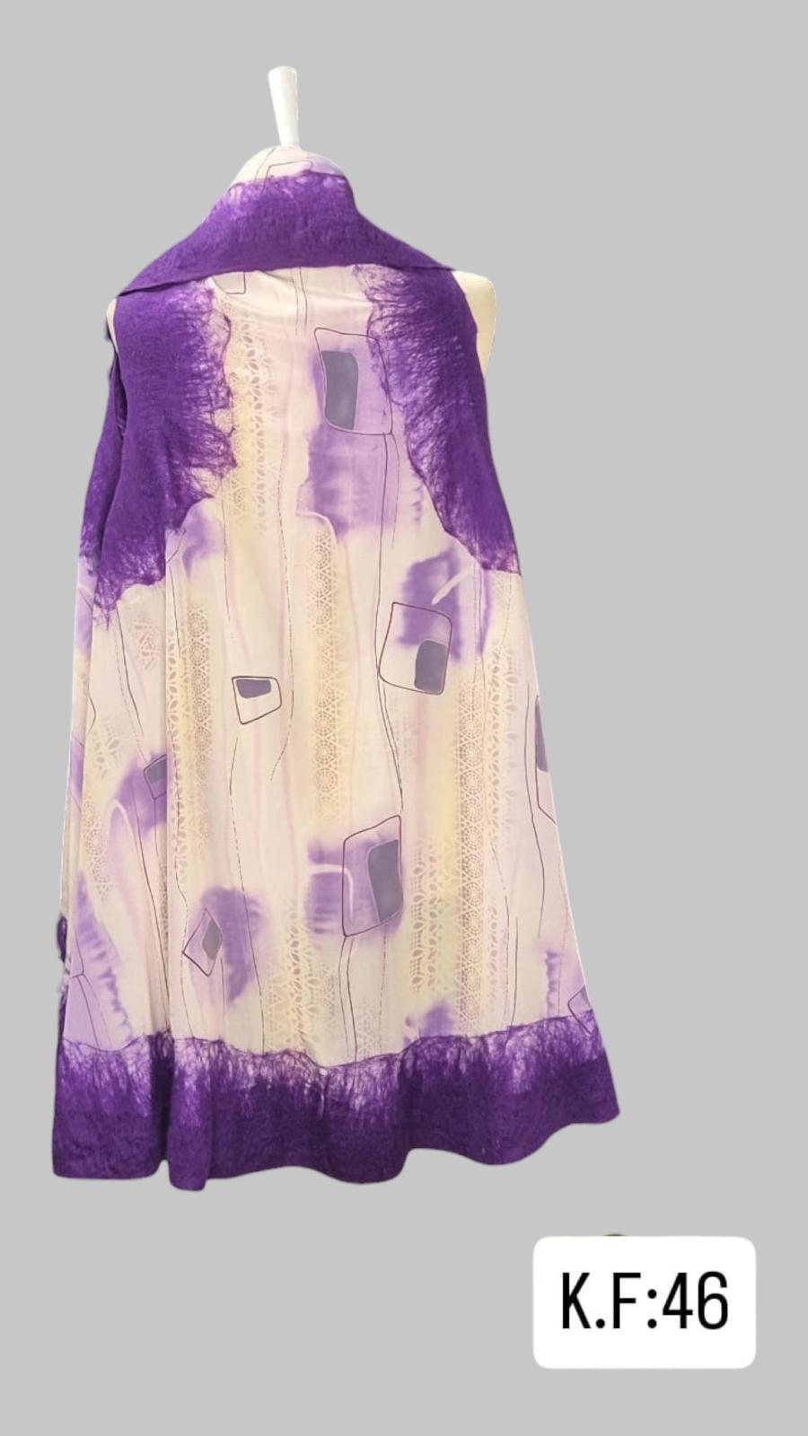ÜRÜNÜMÜZÜN ORTASI İPEK ŞİFONDUR.ÜRÜNÜMÜZ KENARLARI KEÇEDİR.ÜRÜNÜMÜZ BOY= 113 GENİŞLİK= 150 SIRT ARASI=25 EBATINDADIR.ILIK SU VE ŞAMPUAN İLE ELDE YIKAMA YAPINIZ.ÜRÜNLERİMİZ SINIRLI STOKLARDA ÜRETİLMİŞTİR.