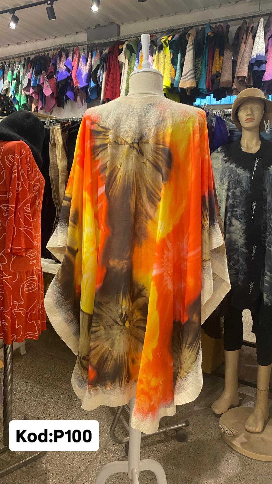 Keçe pançolarımızı 20-24 mikyon yünlerden elde üretilmiştir Vual nefes alan kumaştır Dijital baskı ile kumaş tasarım desenler kullanılmıştır Pançonun sadece kenar kısımları keçeleştirilireke üretilmiştir Standart bedendir.Omuz =42 Boy=101 ölçüsündedir