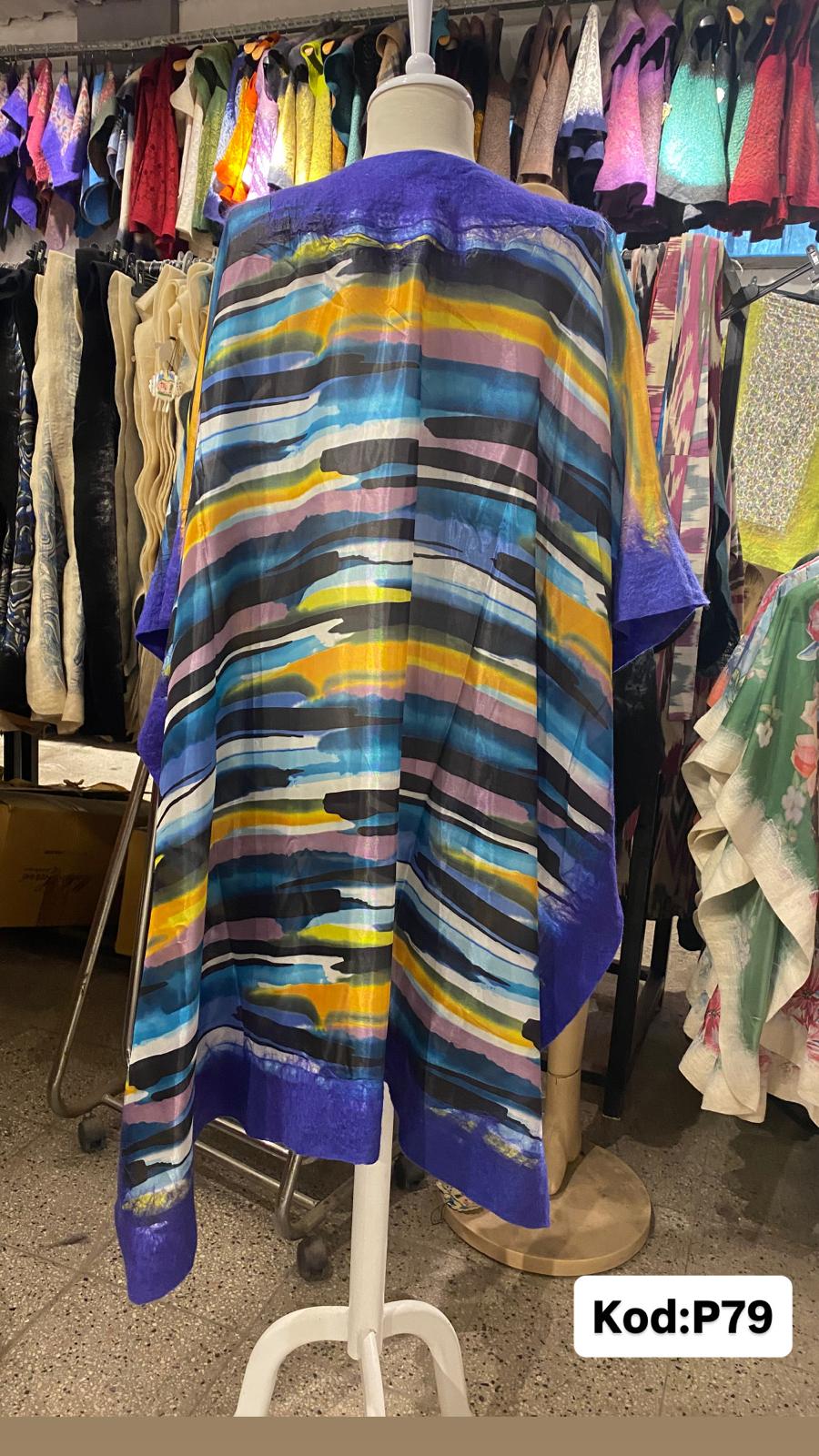 Keçe pançolarımızı 20-24 mikyon yünlerden elde üretilmiştir Vual nefes alan kumaştır Dijital baskı ile kumaş tasarım desenler kullanılmıştır Pançonun sadece kenar kısımları keçeleştirilireke üretilmiştir Standart bedendir.Omuz =42 Boy=101 ölçüsündedir