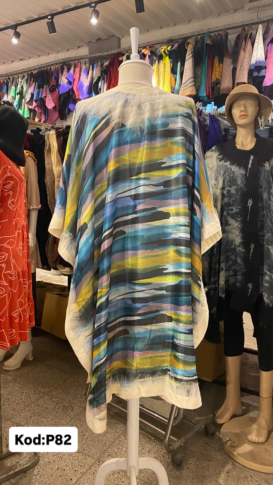 Keçe pançolarımızı 20-24 mikyon yünlerden elde üretilmiştir Vual nefes alan kumaştır Dijital baskı ile kumaş tasarım desenler kullanılmıştır Pançonun sadece kenar kısımları keçeleştirilireke üretilmiştir Standart bedendir.Omuz =42 Boy=101 ölçüsündedir