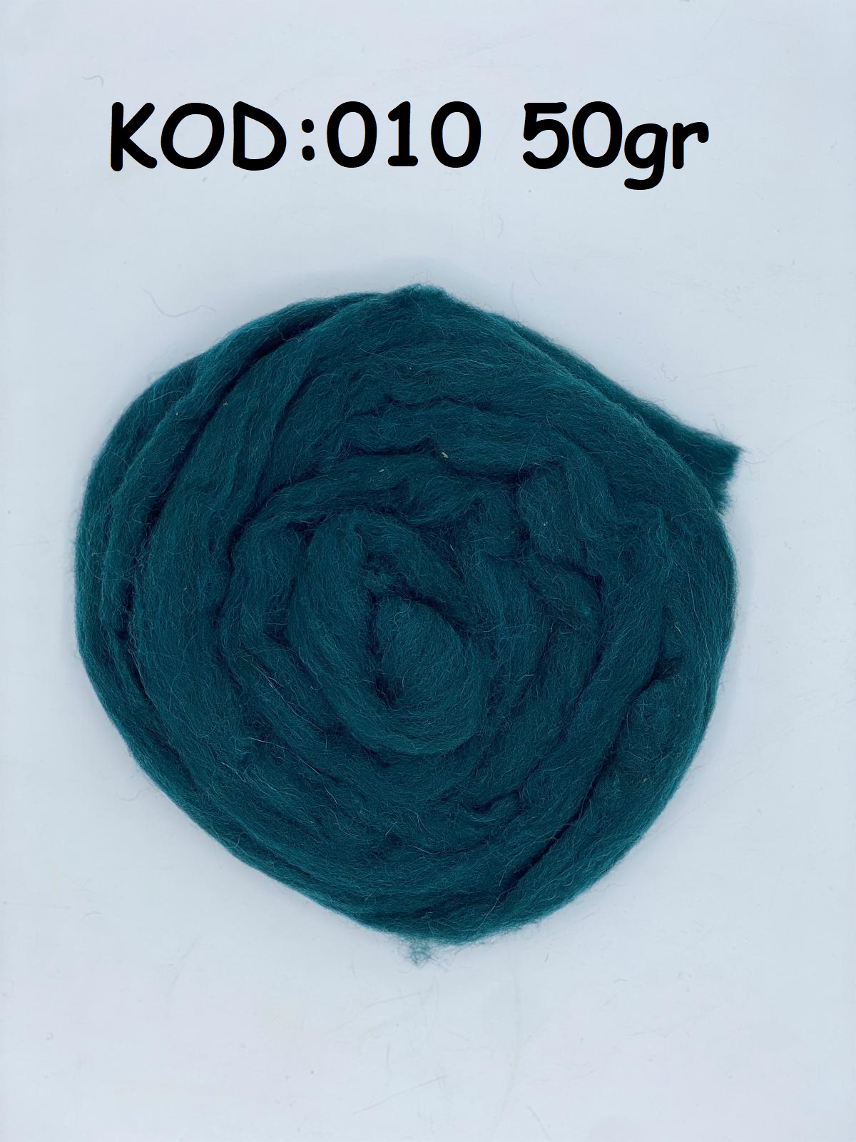 MERİNOS KOYUN CİNSİ 20 İLA 24 MİKRON YÜNLERİN KARIŞIMINDA ISLAK VE KURU KEÇELEME YAPIMI İÇİN ÖZEL OLARAK ÜRETİLMİŞTİR. BOYALARIMIZ EKOTEST RAPORLU OLUP KANSOROJEN İÇERMEZ. SAF DOĞAL YÜNDÜR. İÇERİSİNDE KATKI YOKTUR. 50GR.