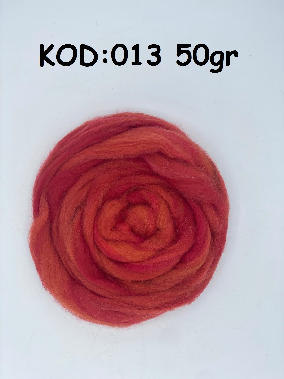 MERİNOS KOYUN CİNSİ 20 İLA 24 MİKRON YÜNLERİN KARIŞIMINDA ISLAK VE KURU KEÇELEME YAPIMI İÇİN ÖZEL OLARAK ÜRETİLMİŞTİR. BOYALARIMIZ EKOTEST RAPORLU OLUP KANSOROJEN İÇERMEZ. SAF DOĞAL YÜNDÜR. İÇERİSİNDE KATKI YOKTUR. 50GR.