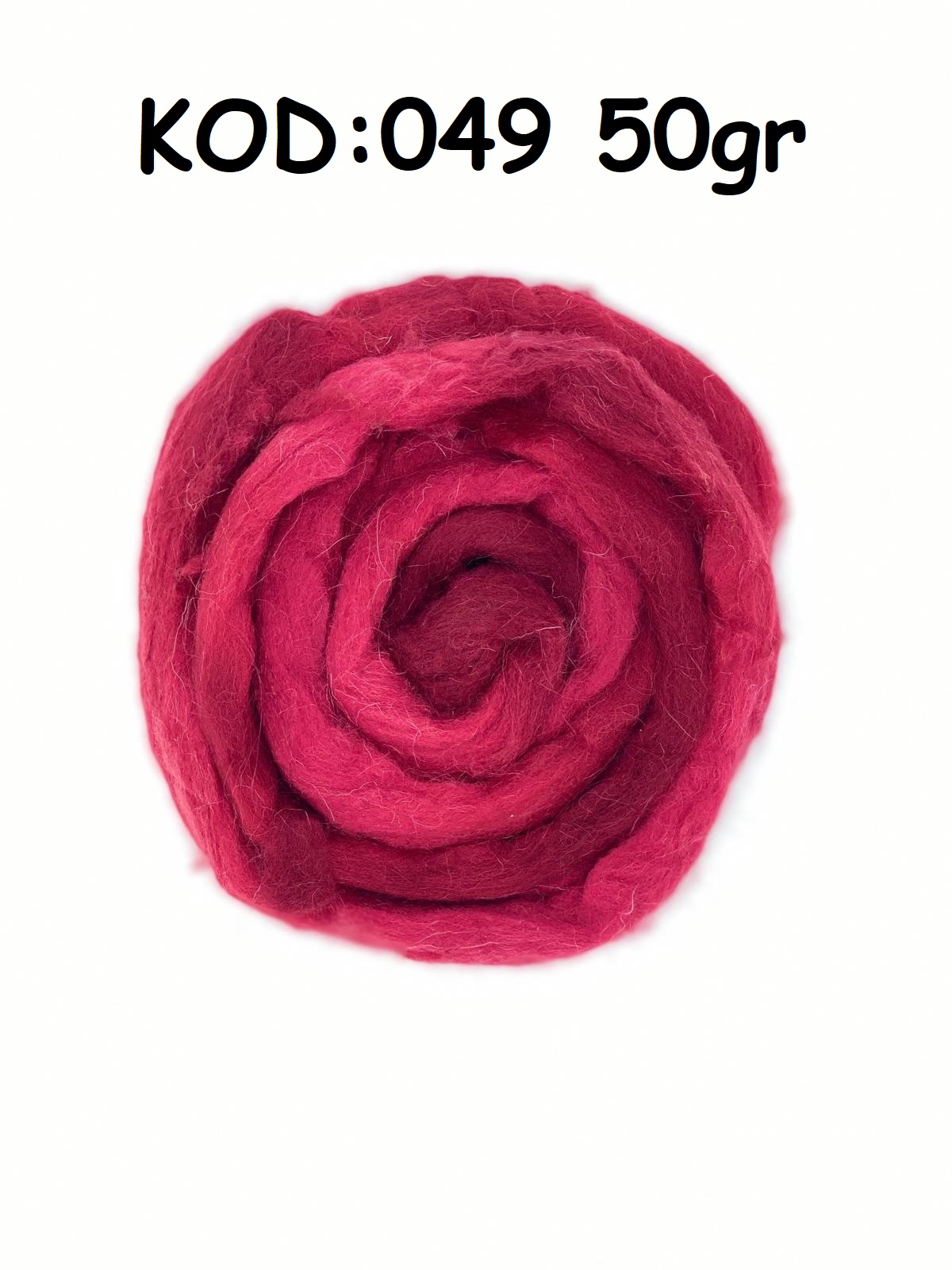 MERİNOS KOYUN CİNSİ 20 İLA 24 MİKRON YÜNLERİN KARIŞIMINDA ISLAK VE KURU KEÇELEME YAPIMI İÇİN ÖZEL OLARAK ÜRETİLMİŞTİR. BOYALARIMIZ EKOTEST RAPORLU OLUP KANSOROJEN İÇERMEZ. SAF DOĞAL YÜNDÜR. İÇERİSİNDE KATKI YOKTUR. 50GR.