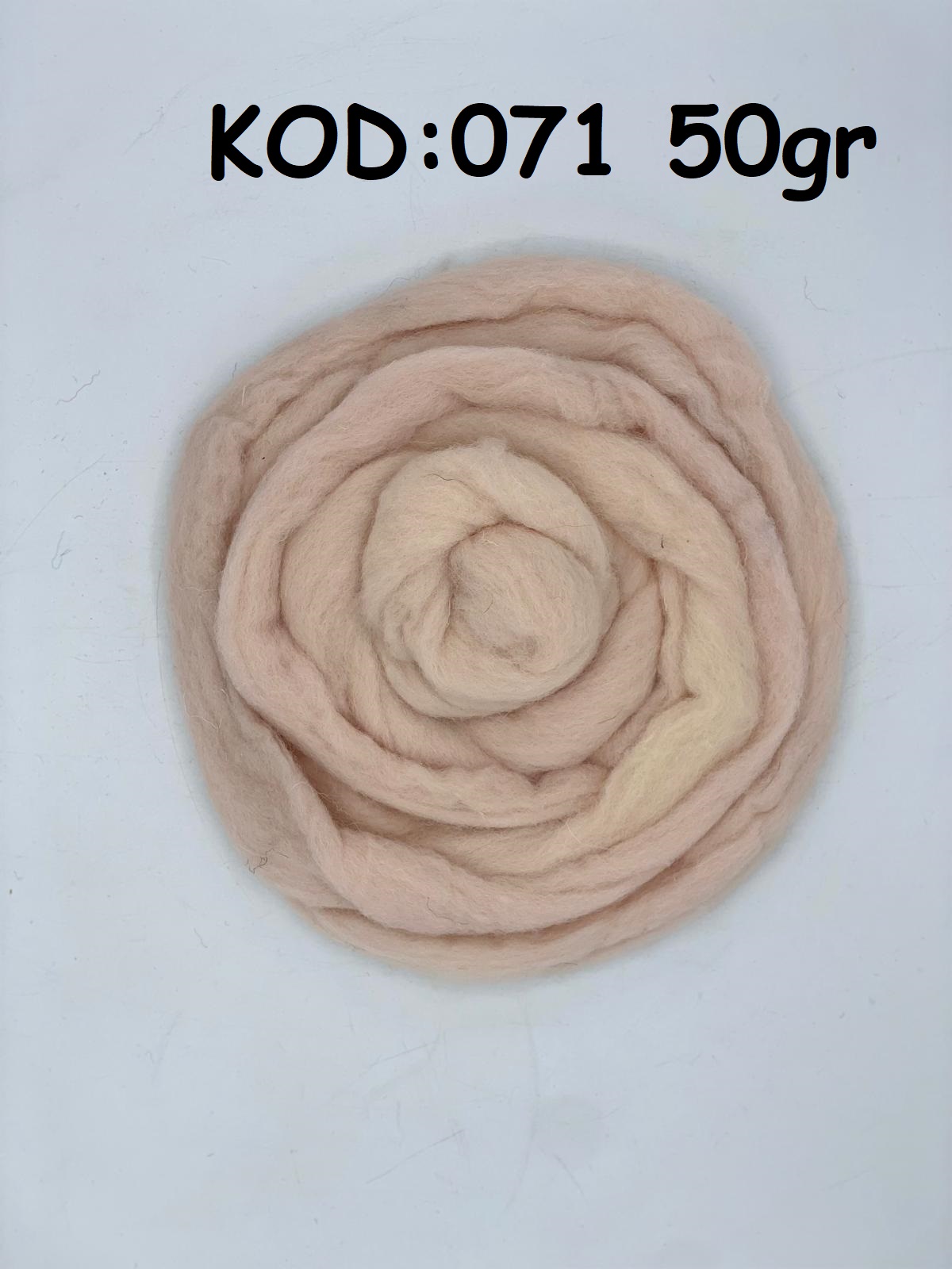 MERİNOS KOYUN CİNSİ 20 İLA 24 MİKRON YÜNLERİN KARIŞIMINDA ISLAK VE KURU KEÇELEME YAPIMI İÇİN ÖZEL OLARAK ÜRETİLMİŞTİR. BOYALARIMIZ EKOTEST RAPORLU OLUP KANSOROJEN İÇERMEZ. SAF DOĞAL YÜNDÜR. İÇERİSİNDE KATKI YOKTUR. 50GR.