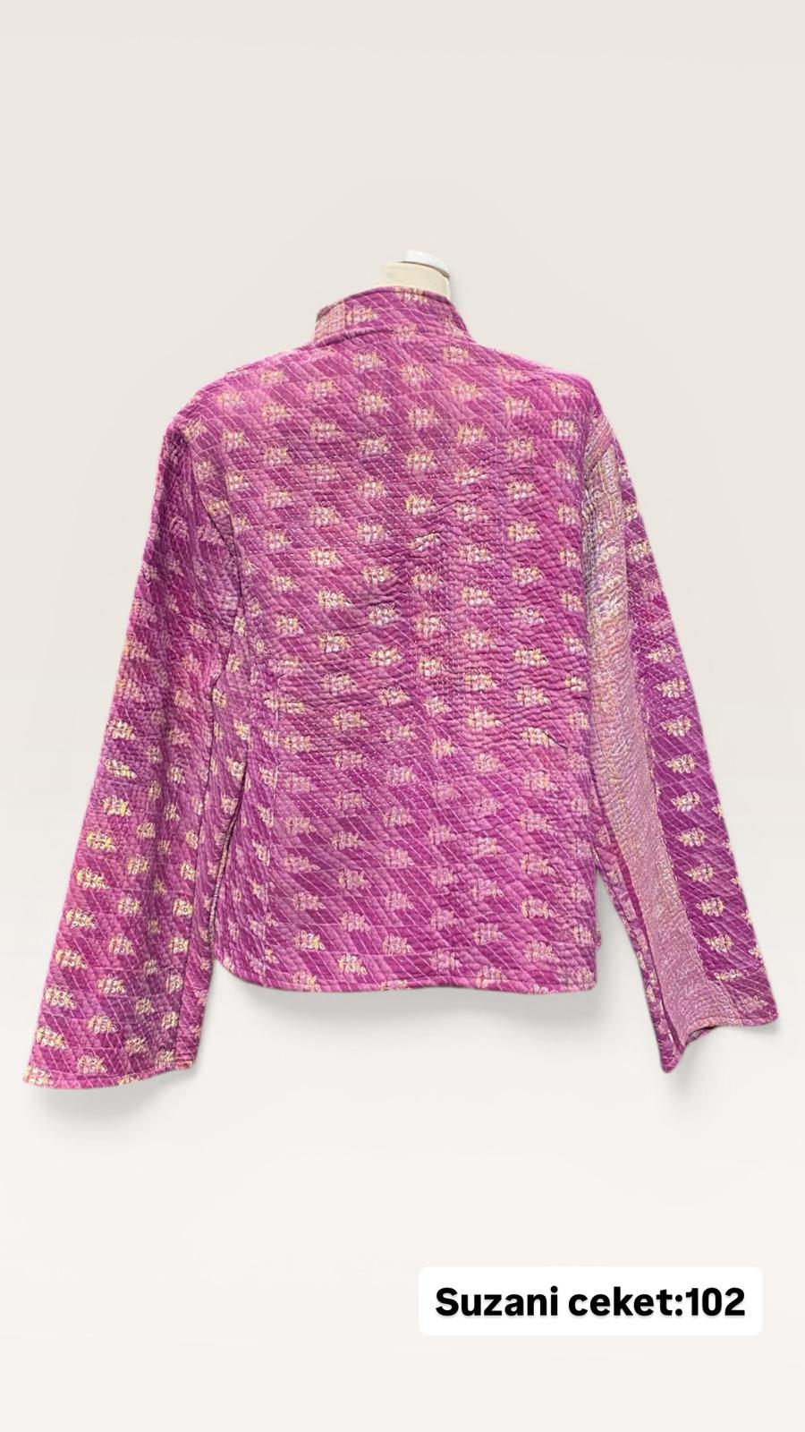 ÜRÜNLERİMİZ İPEK SUZANİDİR. ÜRÜNÜMÜZ ÖLÇÜLERİ OMUZ=45 BOY=66 KOL=59 EBATINDADIR.ÜRÜNÜMÜZ FERMUARLIDIR.EL YAPIMI ESKİ KUMAŞLARDAN ÜRETİLMİŞTİR.ÜRÜNÜMÜZ KİŞİYE ÖZEL TASARIMDIR.