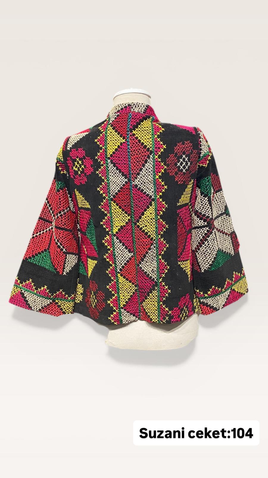 ÜRÜNLERİMİZ İPEK SUZANİDİR. ÜRÜNÜMÜZ ÖLÇÜLERİ OMUZ=41 BOY=59 KOL=59 EBATINDADIR.ÜRÜNÜMÜZ ÇİFT CEPLİDİR.ÜRÜNÜMÜZ ASTARLIDIR.EL YAPIMI ESKİ KUMAŞLARDAN ÜRETİLMİŞTİR.ÜRÜNÜMÜZ KİŞİYE ÖZEL TASARIMDIR.