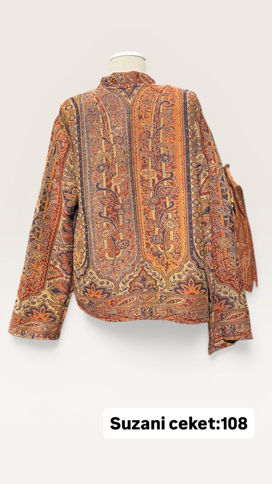 ÜRÜNLERİMİZ İPEK SUZANİDİR. ÜRÜNÜMÜZ ÖLÇÜLERİ OMUZ=41 BOY=73 KOL=46 EBATINDADIR.ÜRÜNÜMÜZ ASTARLIDIR.EL YAPIMI ESKİ KUMAŞLARDAN ÜRETİLMİŞTİR. ÜRÜNÜMÜZ KİŞİYE ÖZEL TASARIMDIR. ürün çok eski kumaşlardan kırkyama yapılarak sonra ceketolrak tasarlanmıştır