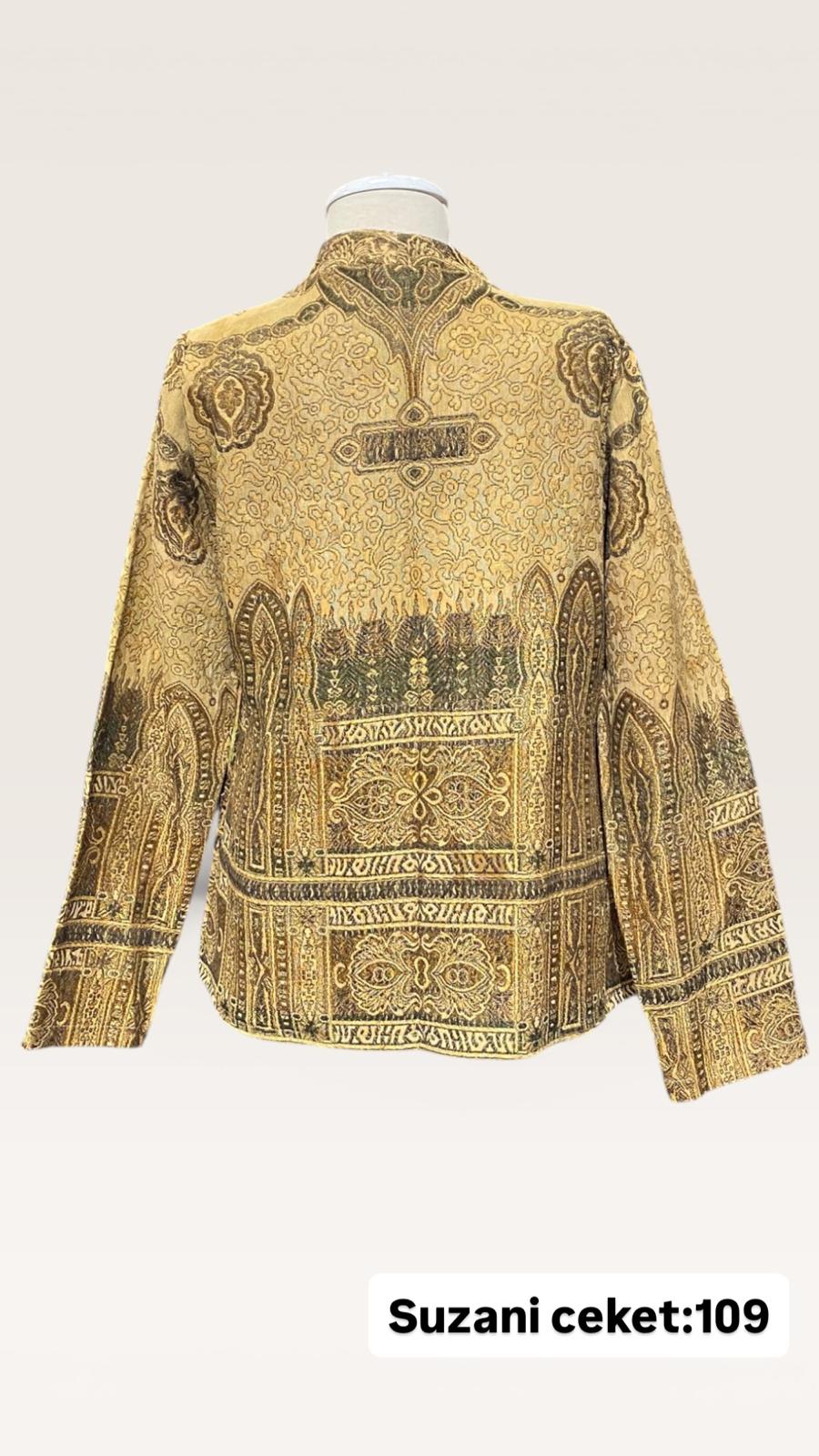ÜRÜNLERİMİZ İPEK SUZANİDİR. ÜRÜNÜMÜZ ÖLÇÜLERİ OMUZ=42 BOY=56 KOL=59 EBATINDADIR.ÜRÜNÜMÜZ ÇİFT CEPLİDİR.ÜRÜNMÜZ ASTARLIDIR.EL YAPIMI ESKİ KUMAŞLARDAN ÜRETİLMİŞTİR.ÜRÜNÜMÜZ KİŞİYE ÖZEL TASARIMDIR.