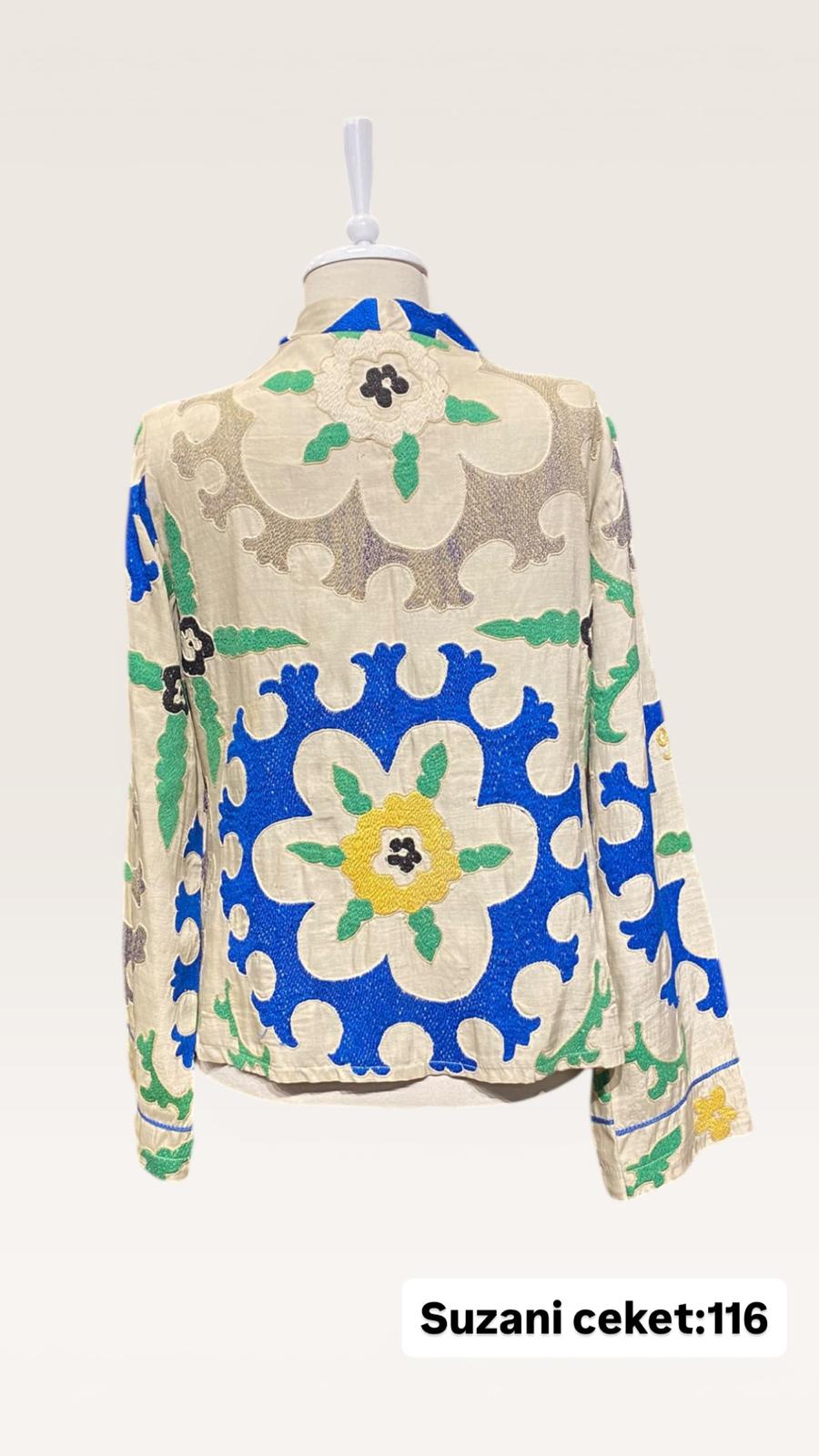 ÜRÜNLERİMİZ İPEK SUZANİDİR. ÜRÜNÜMÜZ ÖLÇÜLERİ OMUZ=42 BOY=56 KOL=59 EBATINDADIR.ÜRÜNÜMÜZ ÇİFT CEPLİDİR.ÜRÜNMÜZ ASTARLIDIR.EL YAPIMI ESKİ KUMAŞLARDAN ÜRETİLMİŞTİR.ÜRÜNÜMÜZ KİŞİYE ÖZEL TASARIMDIR.