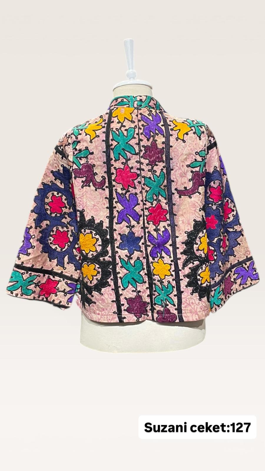 ÜRÜNLERİMİZ İPEK SUZANİDİR. ÜRÜNÜMÜZ ÖLÇÜLERİ OMUZ=41 BOY=59 KOL=59 EBATINDADIR.ÜRÜNÜMÜZ ÇİFT CEPLİDİR.ÜRÜNÜMÜZ ASTARLIDIR.EL YAPIMI ESKİ KUMAŞLARDAN ÜRETİLMİŞTİR.ÜRÜNÜMÜZ KİŞİYE ÖZEL TASARIMDIR.