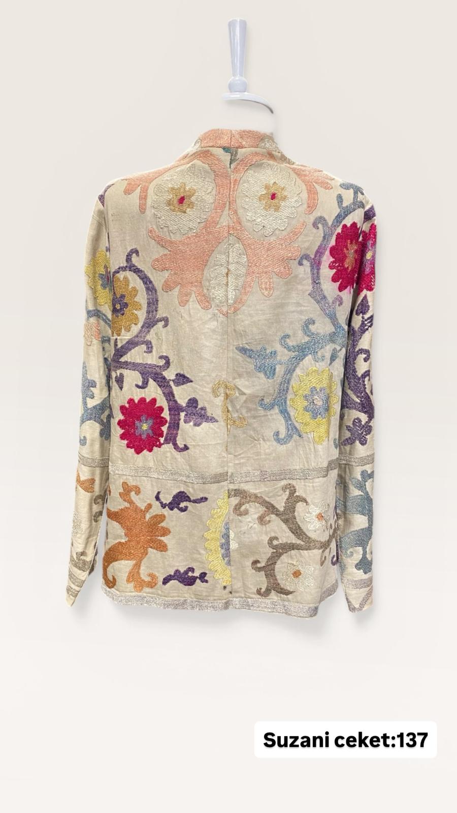 ÜRÜNLERİMİZ İPEK SUZANİDİR. ÜRÜNÜMÜZ ÖLÇÜLERİ OMUZ=41 BOY=59 KOL=59 EBATINDADIR.ÜRÜNÜMÜZ ÇİFT CEPLİDİR.ÜRÜNÜMÜZ ASTARLIDIR.EL YAPIMI ESKİ KUMAŞLARDAN ÜRETİLMİŞTİR.ÜRÜNÜMÜZ KİŞİYE ÖZEL TASARIMDIR.