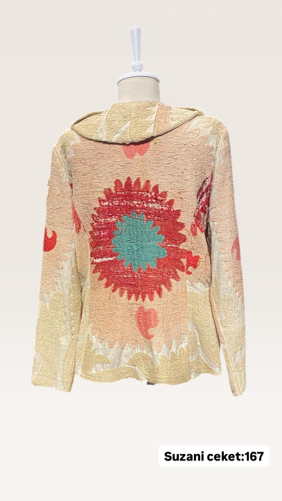 ÜRÜNLERİMİZ İPEK SUZANİDİR. ÜRÜNÜMÜZ ÖLÇÜLERİ OMUZ=45 BOY=66 KOL=59 EBATINDADIR.ÜRÜNÜMÜZ FERMUARLIDIR.EL YAPIMI ESKİ KUMAŞLARDAN ÜRETİLMİŞTİR.ÜRÜNÜMÜZ KİŞİYE ÖZEL TASARIMDIR.