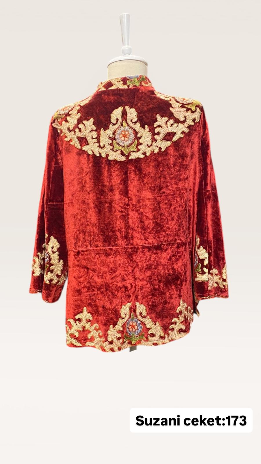 ÜRÜNLERİMİZ İPEK SUZANİDİR. ÜRÜNÜMÜZ ÖLÇÜLERİ OMUZ=40 BOY=76 KOL=58 EBATINDADIR.ÜRÜNÜMÜZ ASTARLIDIR.ÜRÜNÜMÜZ ÇİFT CEPLİDİR.EL YAPIMI ESKİ KUMAŞLARDAN ÜRETİLMİŞTİR.ÜRÜNÜMÜZ KİŞİYE ÖZEL TASARIMDIR.