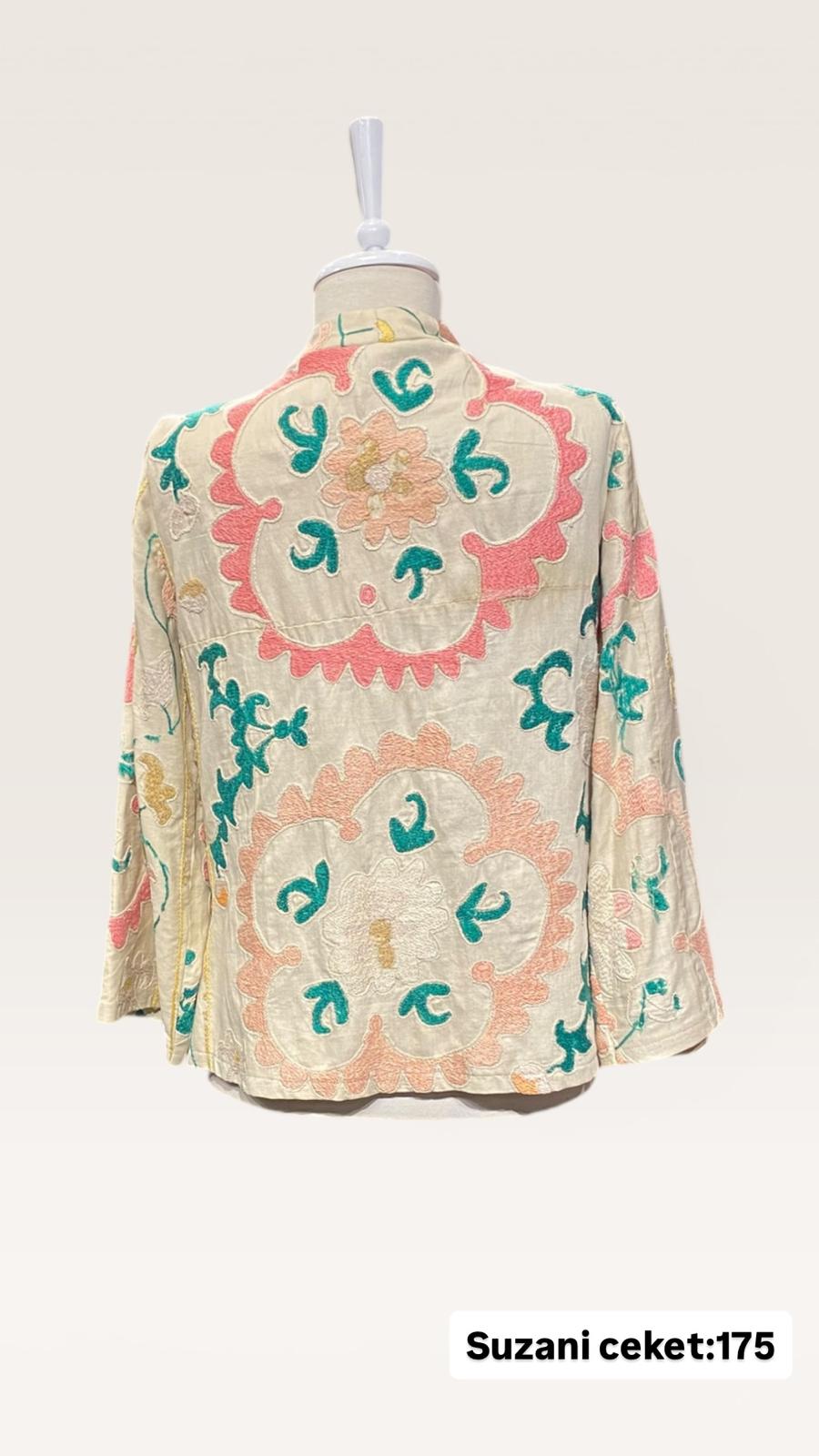 ÜRÜNLERİMİZ İPEK SUZANİDİR. ÜRÜNÜMÜZ ÖLÇÜLERİ OMUZ=36 BOY=58 KOL=53 EBATINDADIR.ÜRÜNÜMÜZ ÇİFT CEPLİDİR.ÜRÜNÜMÜZ ASTARLIDIR.EL YAPIMI ESKİ KUMAŞLARDAN ÜRETİLMİŞTİR.ÜRÜNÜMÜZ KİŞİYE ÖZEL TASARIMDIR.