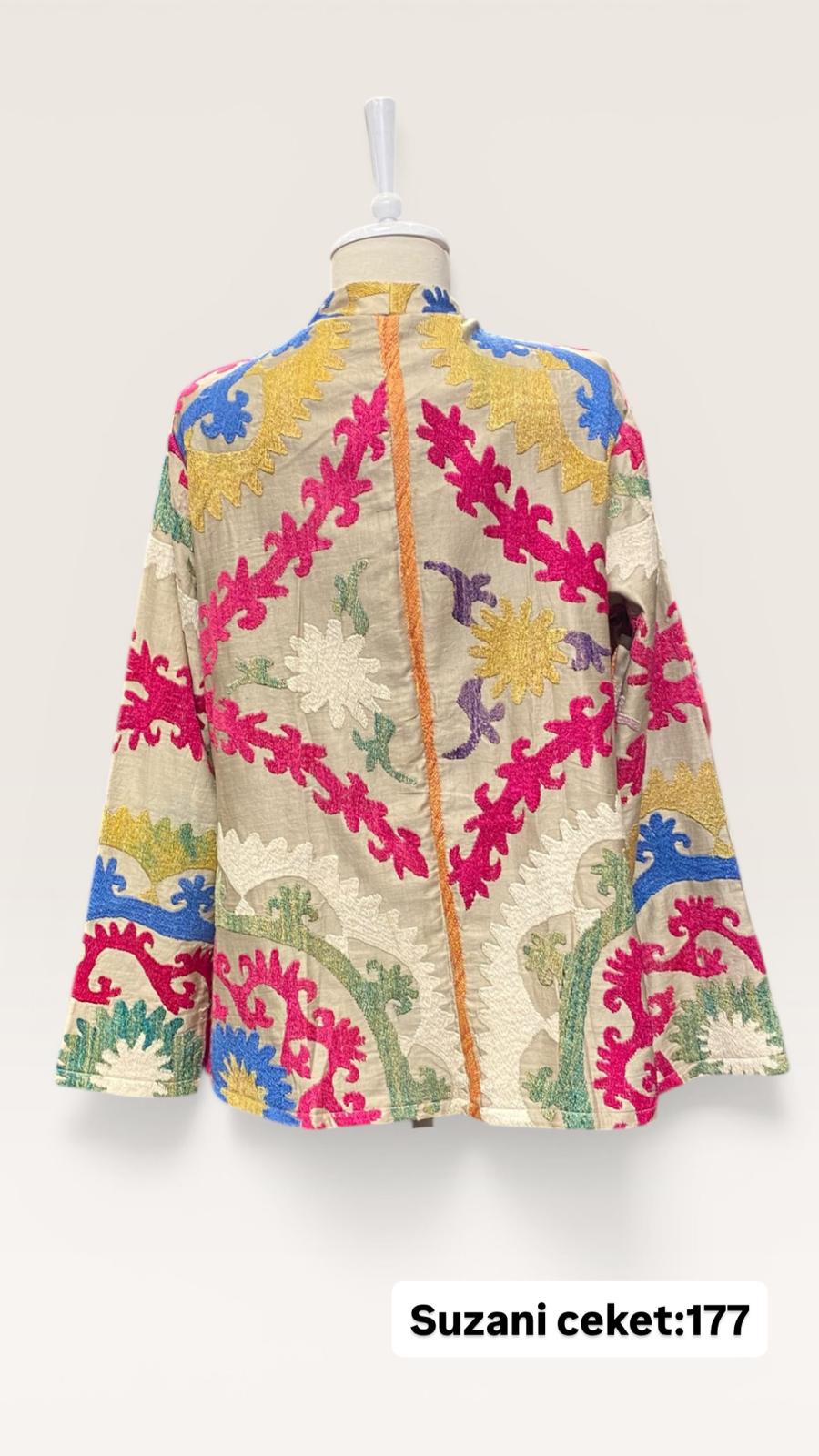ÜRÜNLERİMİZ İPEK SUZANİDİR. ÜRÜNÜMÜZ ÖLÇÜLERİ OMUZ=41 BOY=59 KOL=59 EBATINDADIR.ÜRÜNÜMÜZ ÇİFT CEPLİDİR.ÜRÜNÜMÜZ ASTARLIDIR.EL YAPIMI ESKİ KUMAŞLARDAN ÜRETİLMİŞTİR.ÜRÜNÜMÜZ KİŞİYE ÖZEL TASARIMDIR.