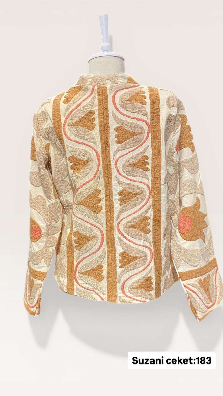 ÜRÜNLERİMİZ İPEK SUZANİDİR. ÜRÜNÜMÜZ ÖLÇÜLERİ OMUZ=40 BOY=76 KOL=58 EBATINDADIR.ÜRÜNÜMÜZ ASTARLIDIR.ÜRÜNÜMÜZ ÇİFT CEPLİDİR.EL YAPIMI ESKİ KUMAŞLARDAN ÜRETİLMİŞTİR.ÜRÜNÜMÜZ KİŞİYE ÖZEL TASARIMDIR.