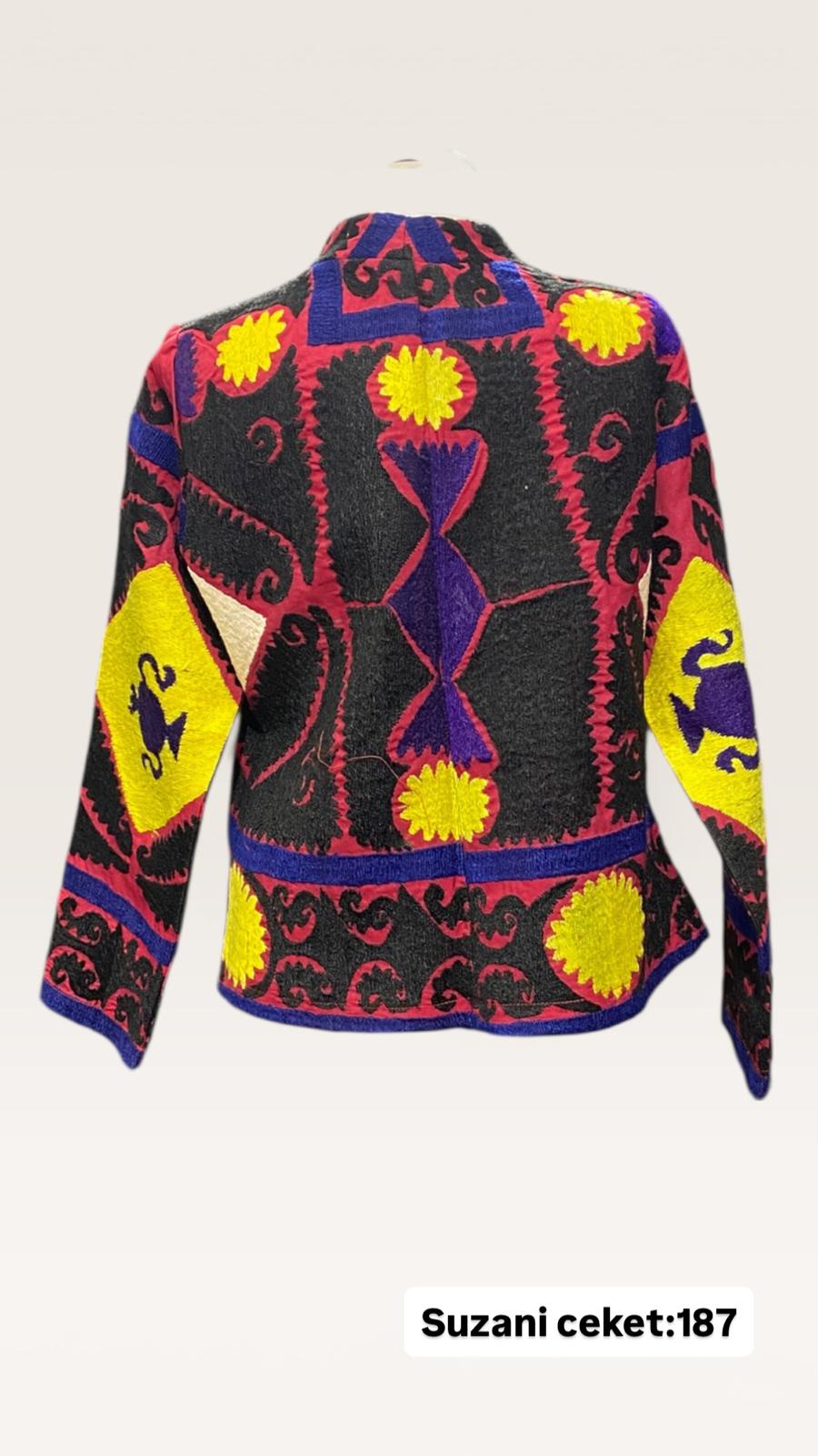 ÜRÜNLERİMİZ İPEK SUZANİDİR. ÜRÜNÜMÜZ ÖLÇÜLERİ OMUZ=41 BOY=73 KOL=46 EBATINDADIR.ÜRÜNÜMÜZ ASTARLIDIR.EL YAPIMI ESKİ KUMAŞLARDAN ÜRETİLMİŞTİR. ÜRÜNÜMÜZ KİŞİYE ÖZEL TASARIMDIR. ürün çok eski kumaşlardan kırkyama yapılarak sonra ceketolrak tasarlanmıştır
