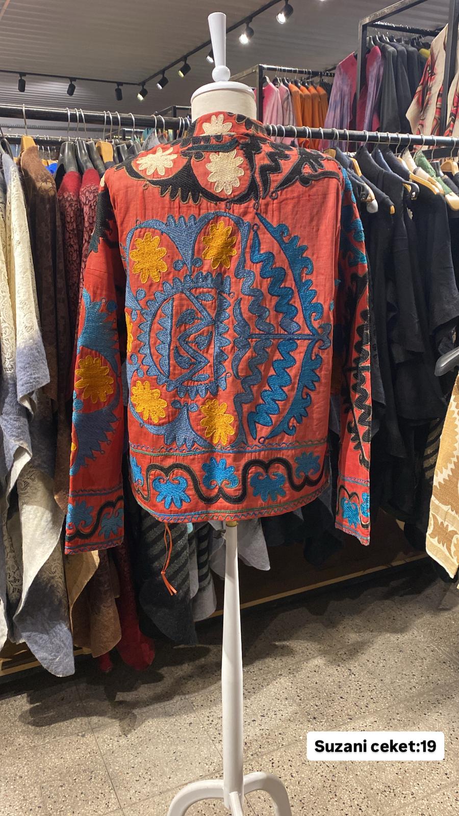 ÜRÜNLERİMİZ İPEK SUZANİDİR. ÜRÜNÜMÜZ ÖLÇÜLERİ OMUZ=42 BOY=56 KOL=59 EBATINDADIR.ÜRÜNÜMÜZ ÇİFT CEPLİDİR.ÜRÜNMÜZ ASTARLIDIR.EL YAPIMI ESKİ KUMAŞLARDAN ÜRETİLMİŞTİR.ÜRÜNÜMÜZ KİŞİYE ÖZEL TASARIMDIR.