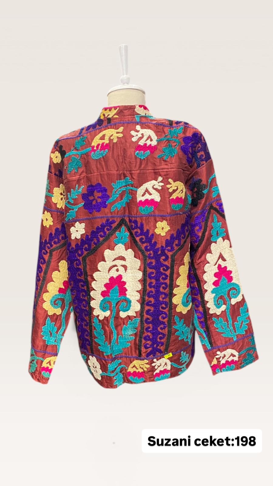 ÜRÜNLERİMİZ İPEK SUZANİDİR. ÜRÜNÜMÜZ ÖLÇÜLERİ OMUZ=41 BOY=59 KOL=59 EBATINDADIR.ÜRÜNÜMÜZ ÇİFT CEPLİDİR.ÜRÜNÜMÜZ ASTARLIDIR.EL YAPIMI ESKİ KUMAŞLARDAN ÜRETİLMİŞTİR.ÜRÜNÜMÜZ KİŞİYE ÖZEL TASARIMDIR.