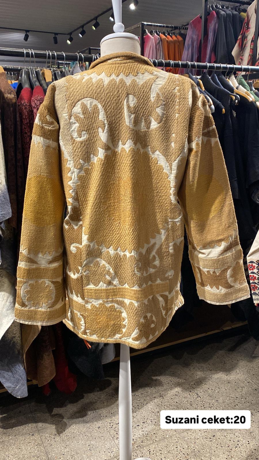 ÜRÜNLERİMİZ İPEK SUZANİDİR. ÜRÜNÜMÜZ ÖLÇÜLERİ OMUZ=41 BOY=73 KOL=46 EBATINDADIR.ÜRÜNÜMÜZ ASTARLIDIR.EL YAPIMI ESKİ KUMAŞLARDAN ÜRETİLMİŞTİR. ÜRÜNÜMÜZ KİŞİYE ÖZEL TASARIMDIR. ürün çok eski kumaşlardan kırkyama yapılarak sonra ceketolrak tasarlanmıştır