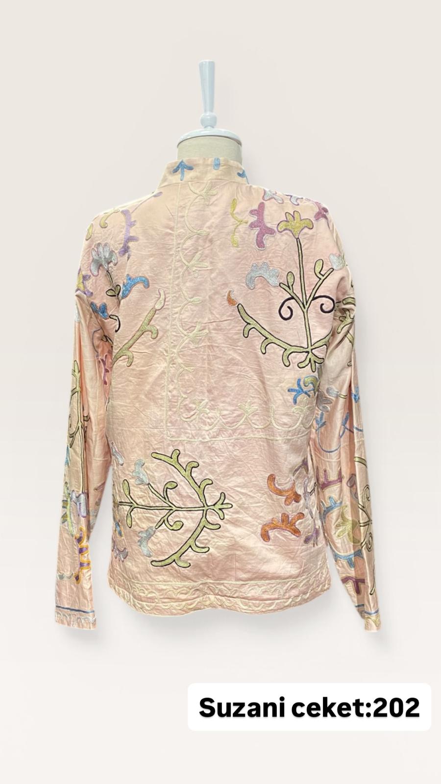 ÜRÜNLERİMİZ İPEK SUZANİDİR. ÜRÜNÜMÜZ ÖLÇÜLERİ OMUZ=42 BOY=56 KOL=59 EBATINDADIR.ÜRÜNÜMÜZ ÇİFT CEPLİDİR.ÜRÜNMÜZ ASTARLIDIR.EL YAPIMI ESKİ KUMAŞLARDAN ÜRETİLMİŞTİR.ÜRÜNÜMÜZ KİŞİYE ÖZEL TASARIMDIR.