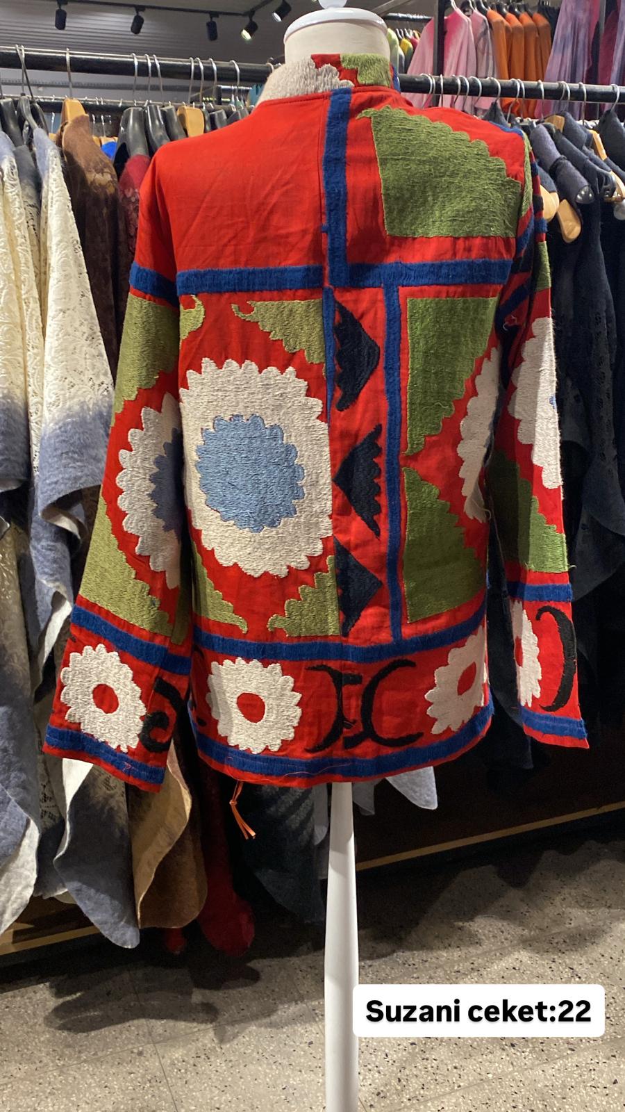 ÜRÜNLERİMİZ İPEK SUZANİDİR. ÜRÜNÜMÜZ ÖLÇÜLERİ OMUZ=42 BOY=56 KOL=59 EBATINDADIR.ÜRÜNÜMÜZ ÇİFT CEPLİDİR.ÜRÜNMÜZ ASTARLIDIR.EL YAPIMI ESKİ KUMAŞLARDAN ÜRETİLMİŞTİR.ÜRÜNÜMÜZ KİŞİYE ÖZEL TASARIMDIR.