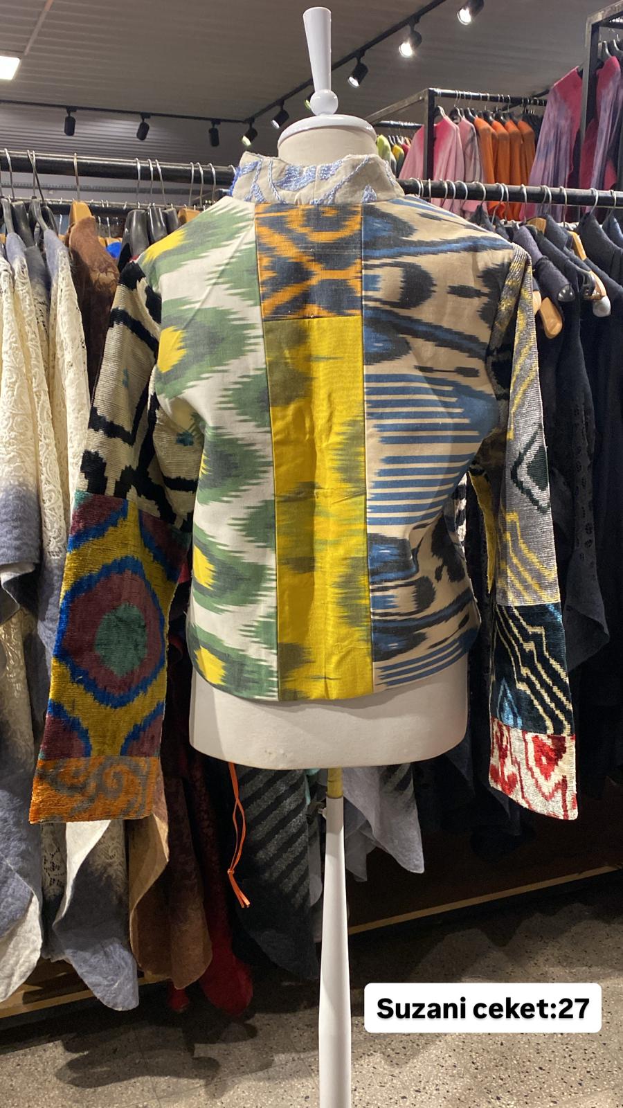 ÜRÜNLERİMİZ İPEK SUZANİDİR. ÜRÜNÜMÜZ ÖLÇÜLERİ OMUZ=36 BOY=58 KOL=53 EBATINDADIR.ÜRÜNÜMÜZ ÇİFT CEPLİDİR.ÜRÜNÜMÜZ ASTARLIDIR.EL YAPIMI ESKİ KUMAŞLARDAN ÜRETİLMİŞTİR.ÜRÜNÜMÜZ KİŞİYE ÖZEL TASARIMDIR.