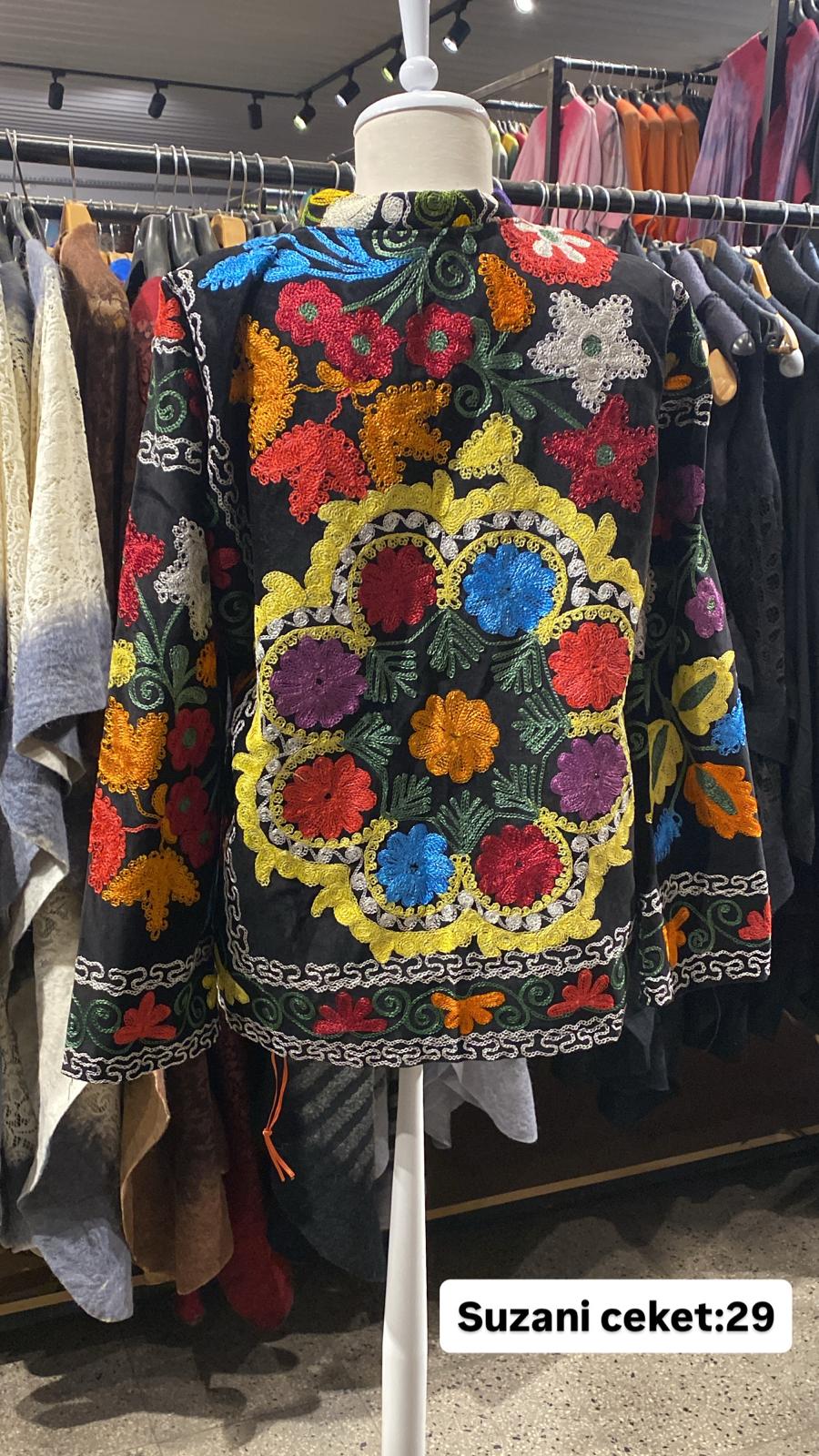 ÜRÜNLERİMİZ İPEK SUZANİDİR. ÜRÜNÜMÜZ ÖLÇÜLERİ OMUZ=42 BOY=56 KOL=59 EBATINDADIR.ÜRÜNÜMÜZ ÇİFT CEPLİDİR.ÜRÜNMÜZ ASTARLIDIR.EL YAPIMI ESKİ KUMAŞLARDAN ÜRETİLMİŞTİR.ÜRÜNÜMÜZ KİŞİYE ÖZEL TASARIMDIR.