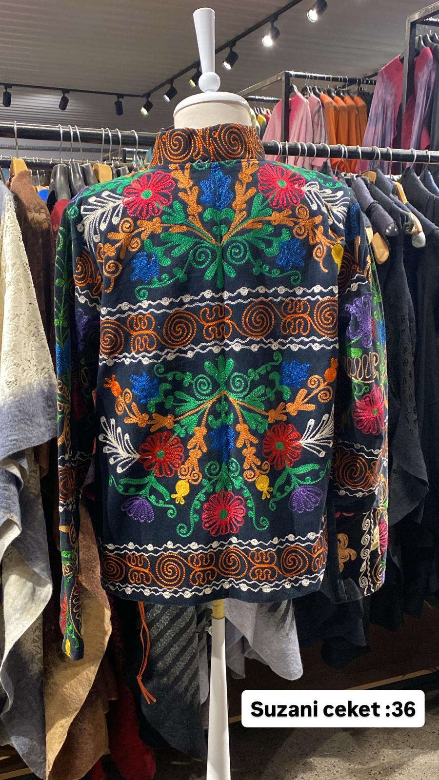 ÜRÜNLERİMİZ İPEK SUZANİDİR. ÜRÜNÜMÜZ ÖLÇÜLERİ OMUZ=41 BOY=73 KOL=46 EBATINDADIR.ÜRÜNÜMÜZ ASTARLIDIR.EL YAPIMI ESKİ KUMAŞLARDAN ÜRETİLMİŞTİR. ÜRÜNÜMÜZ KİŞİYE ÖZEL TASARIMDIR. ürün çok eski kumaşlardan kırkyama yapılarak sonra ceketolrak tasarlanmıştır