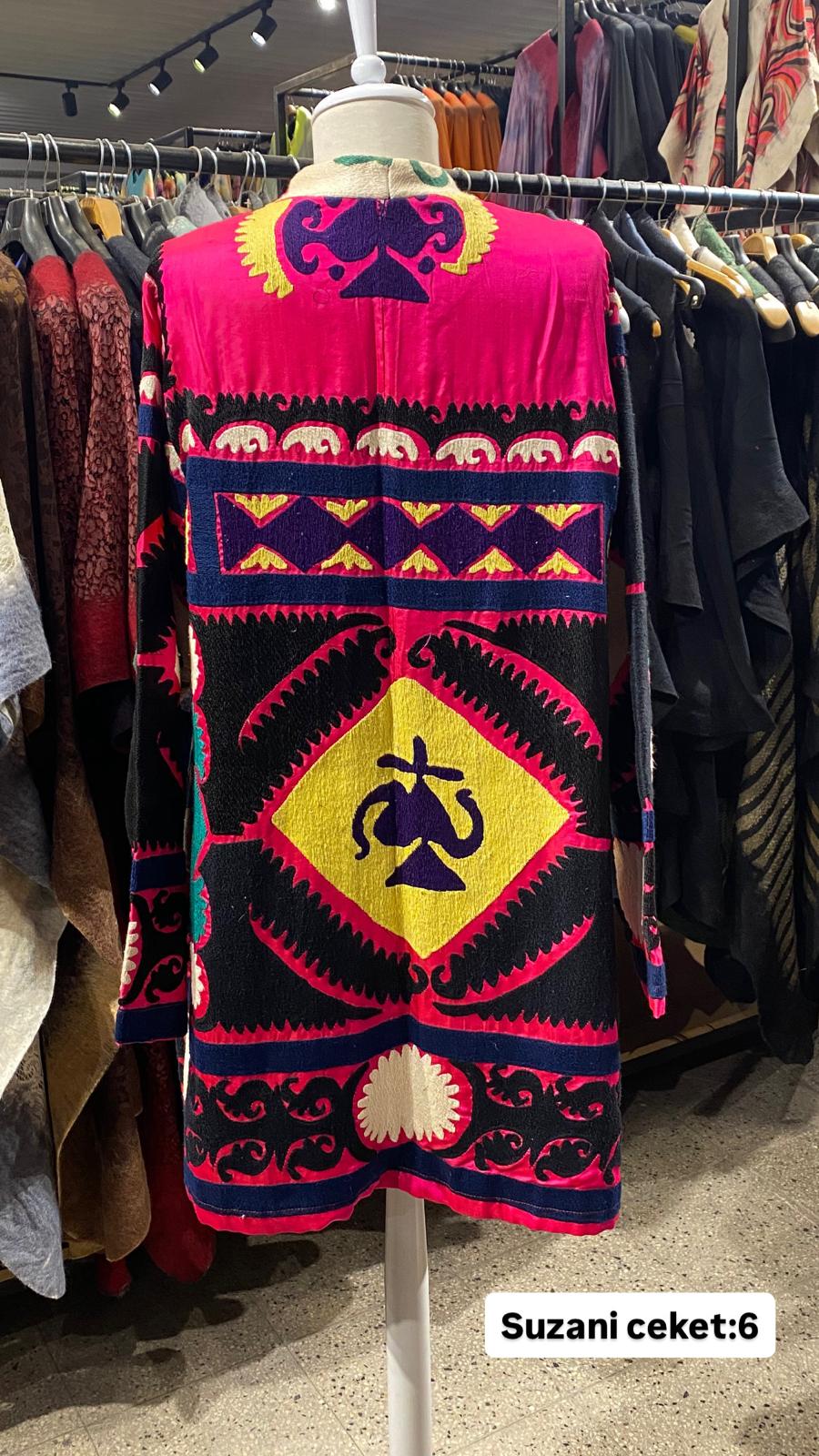 ÜRÜNLERİMİZ İPEK SUZANİDİR. ÜRÜNÜMÜZ ÖLÇÜLERİ OMUZ=45 BOY=66 KOL=59 EBATINDADIR.ÜRÜNÜMÜZ FERMUARLIDIR.EL YAPIMI ESKİ KUMAŞLARDAN ÜRETİLMİŞTİR.ÜRÜNÜMÜZ KİŞİYE ÖZEL TASARIMDIR.