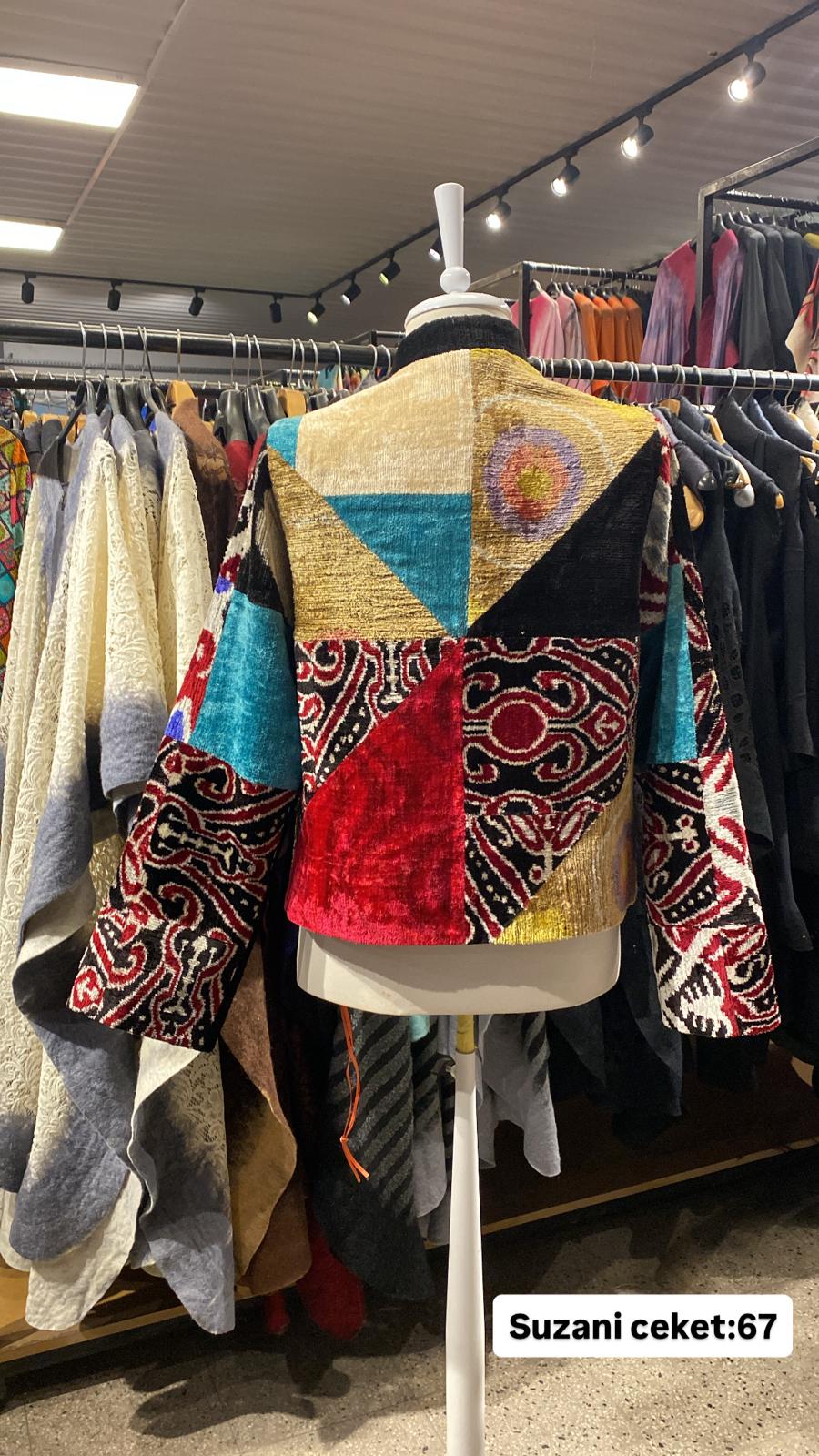 ÜRÜNLERİMİZ İPEK SUZANİDİR. ÜRÜNÜMÜZ ÖLÇÜLERİ OMUZ=45 BOY=66 KOL=59 EBATINDADIR.ÜRÜNÜMÜZ FERMUARLIDIR.EL YAPIMI ESKİ KUMAŞLARDAN ÜRETİLMİŞTİR.ÜRÜNÜMÜZ KİŞİYE ÖZEL TASARIMDIR.