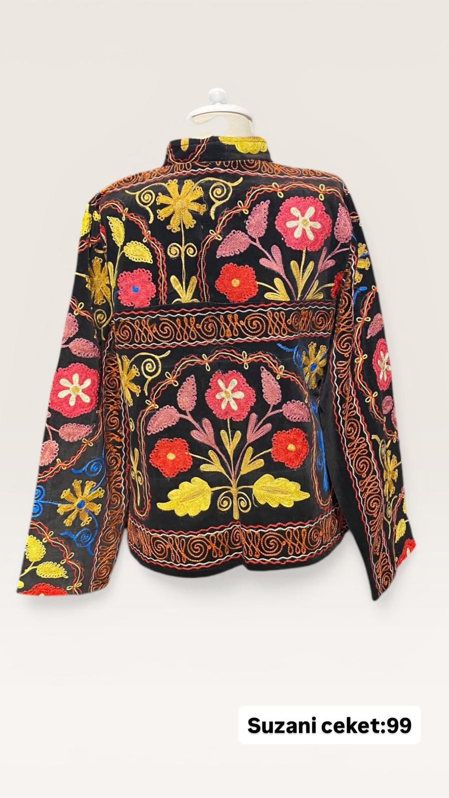ÜRÜNLERİMİZ İPEK SUZANİDİR. ÜRÜNÜMÜZ ÖLÇÜLERİ OMUZ=41 BOY=73 KOL=46 EBATINDADIR.ÜRÜNÜMÜZ ASTARLIDIR.EL YAPIMI ESKİ KUMAŞLARDAN ÜRETİLMİŞTİR. ÜRÜNÜMÜZ KİŞİYE ÖZEL TASARIMDIR. ürün çok eski kumaşlardan kırkyama yapılarak sonra ceketolrak tasarlanmıştır