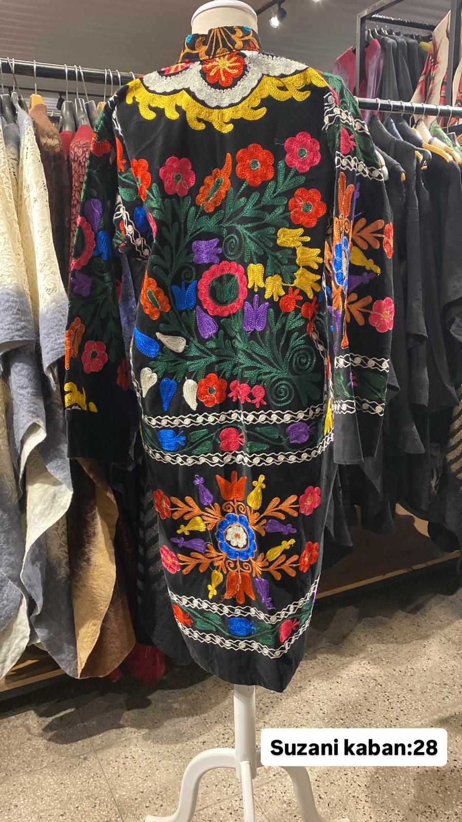 ÜRÜNLERİMİZ İPEK SUZANİDİR. ÜRÜNÜMÜZ ÖLÇÜLERİ OMUZ=40 BOY=83 KOL=59 EBATINDADIR. ÜRÜNÜMÜZ ÇİFT CEPLİDİR.ÜRÜNÜMÜZ ASTARLIDIR.EL YAPIMI ESKİ KUMAŞLARDAN ÜRETİLMİŞTİR ÜRÜNÜMÜZ KİŞİYE ÖZEL TASARIMDIR.
