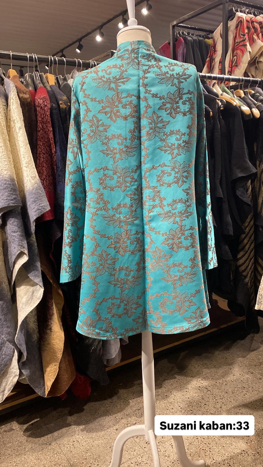 ÜRÜNLERİMİZ İPEK SUZANİDİR. ÜRÜNÜMÜZ ÖLÇÜLERİ OMUZ=40 BOY=83 KOL=59 EBATINDADIR. ÜRÜNÜMÜZ ÇİFT CEPLİDİR.ÜRÜNÜMÜZ ASTARLIDIR.EL YAPIMI ESKİ KUMAŞLARDAN ÜRETİLMİŞTİR ÜRÜNÜMÜZ KİŞİYE ÖZEL TASARIMDIR.